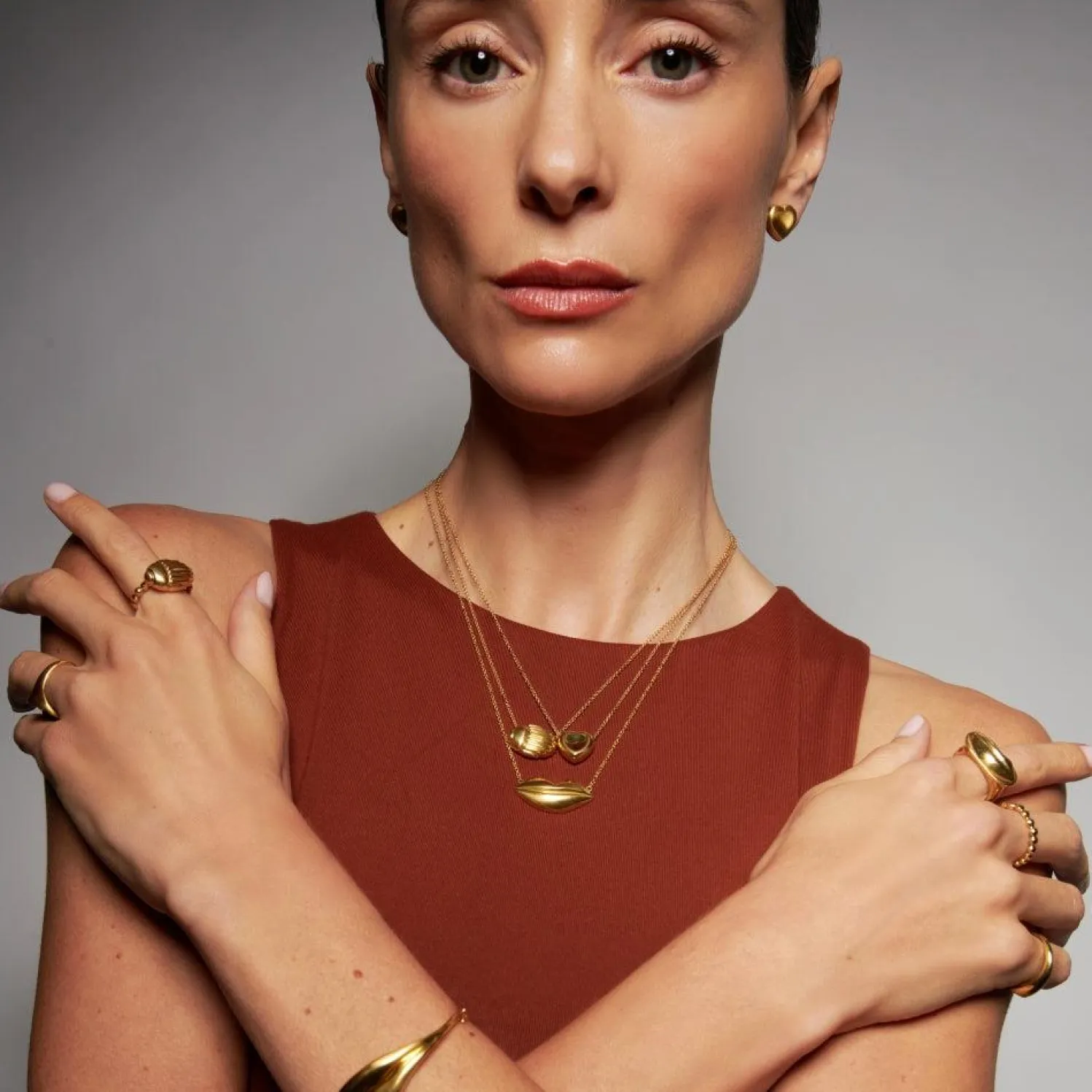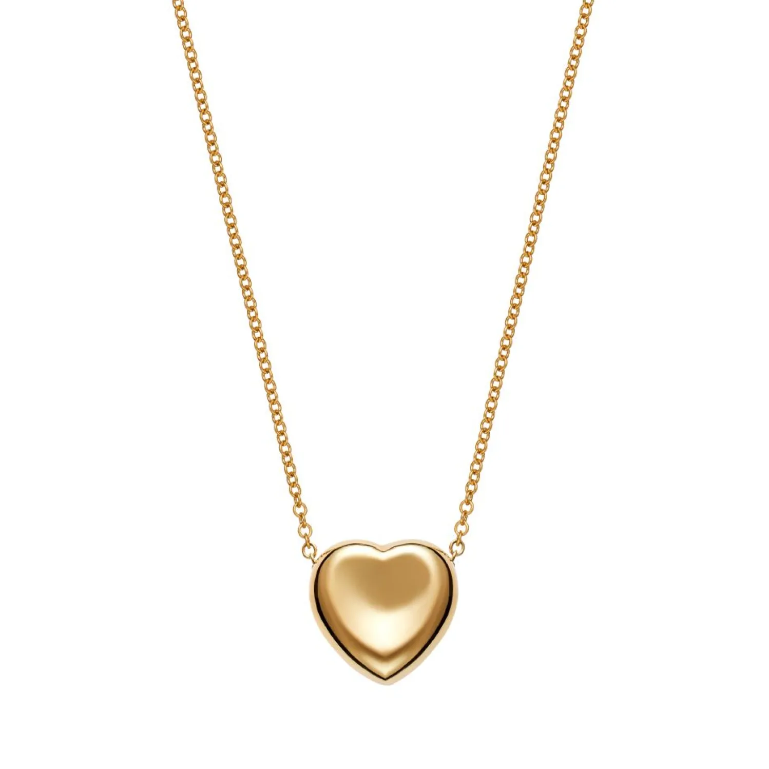 Sculptural yellow gold heart pendant with a satin finish anchored to an adjustable length chain.