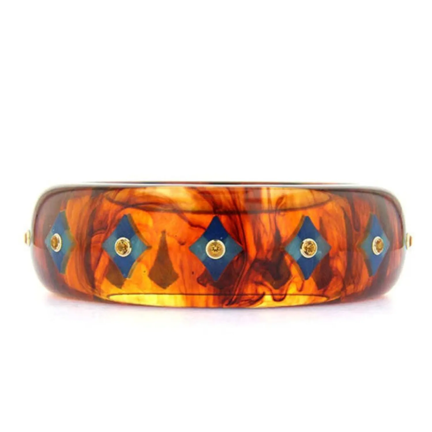Mark Davis Vintage Bakelite Bangle with Diamond-shaped Inlay Detailing with Citrine set in Yellow Gold. Each Mark Davis Piece is One-of-a-Kind and Sustainably Produced in South Carolina.