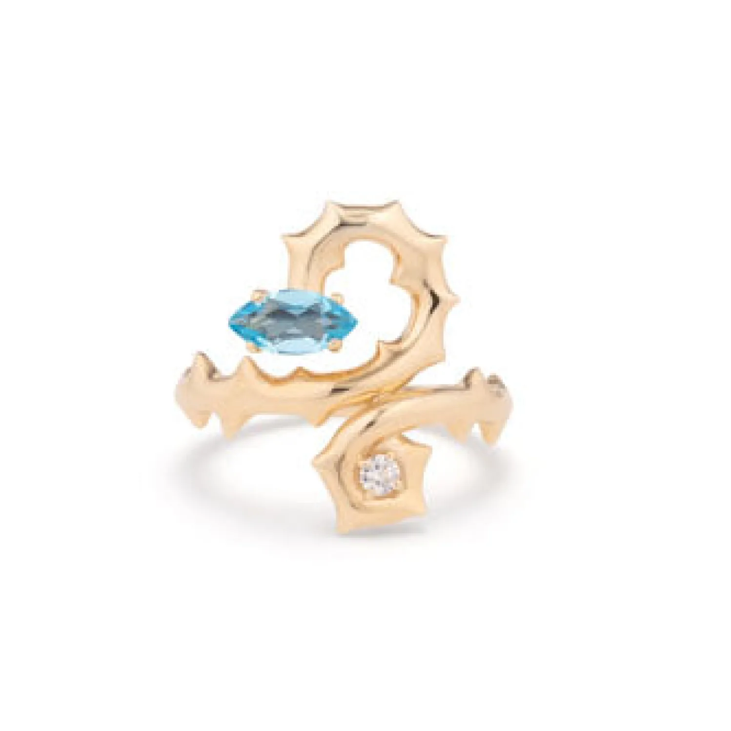 Bea Bongiasca Spinosetti Dragon Ring with Marquise Cut Blue Topaz and White Diamond Accents. Handmade in Italy.