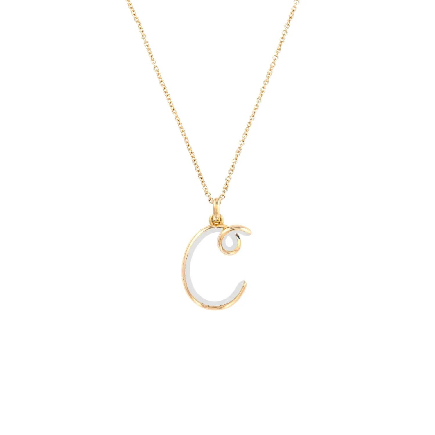 Bea Bongiasca Initial Alphabet necklace with White Hand-painted Enamel ‘C’ Pendant. Chain included.