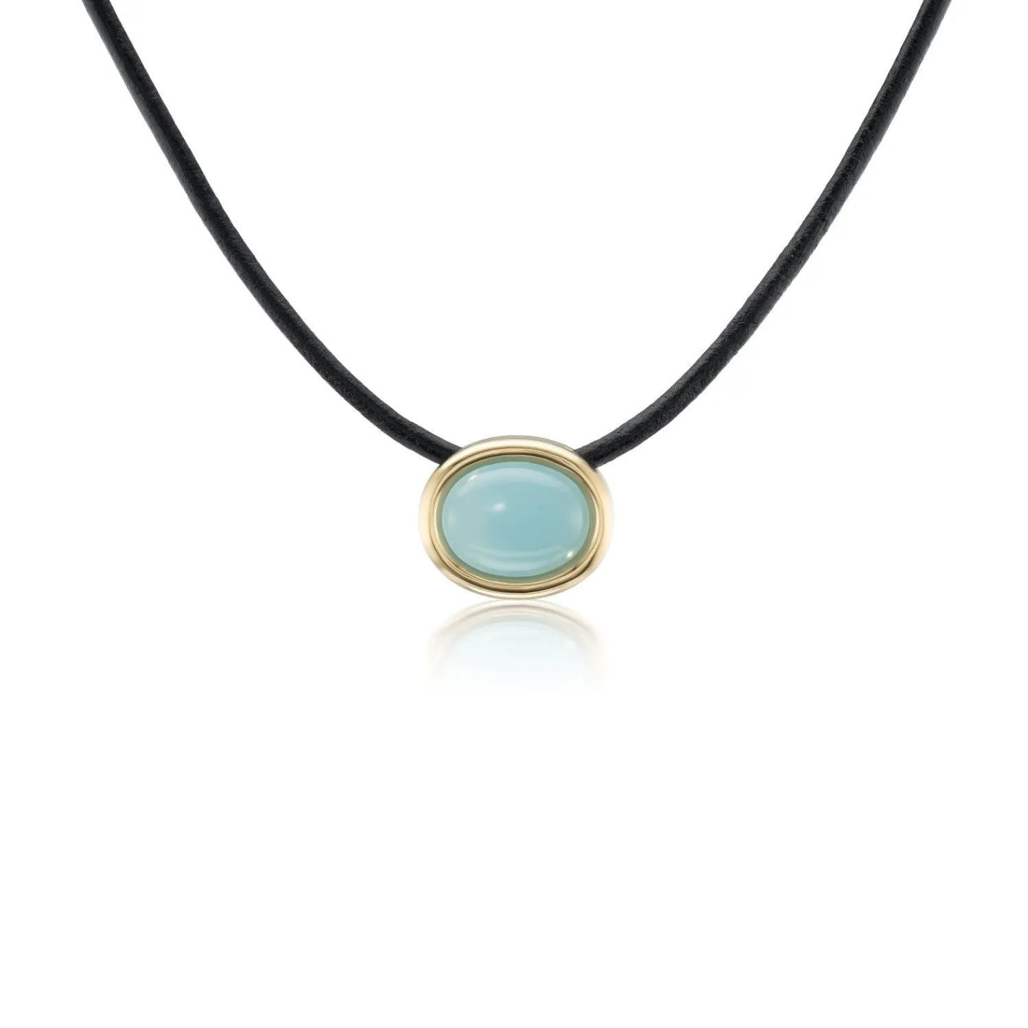 BECK Scuba Choker with Cabochon Aquamarine on Black Leather and Yellow Gold Cord