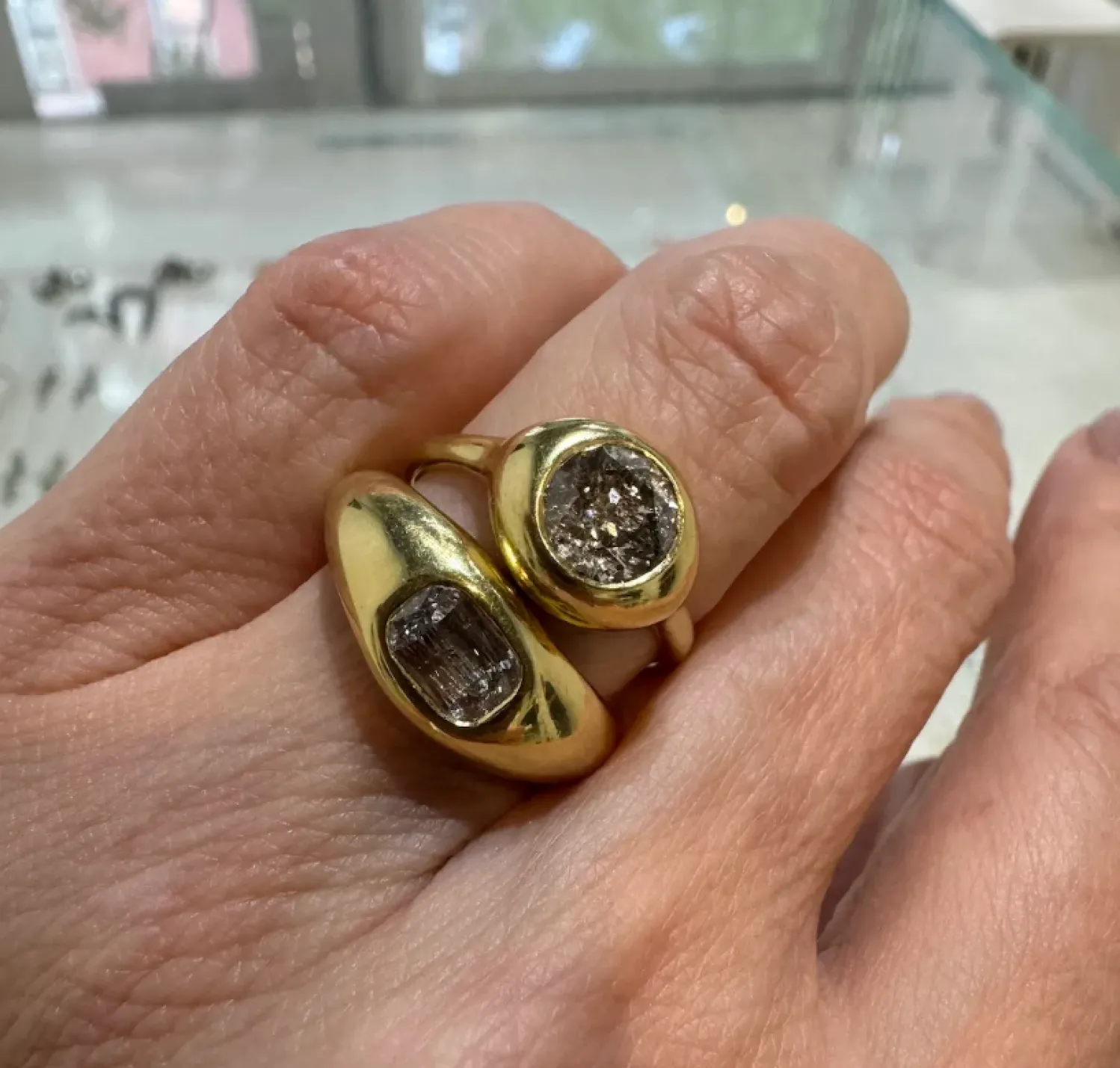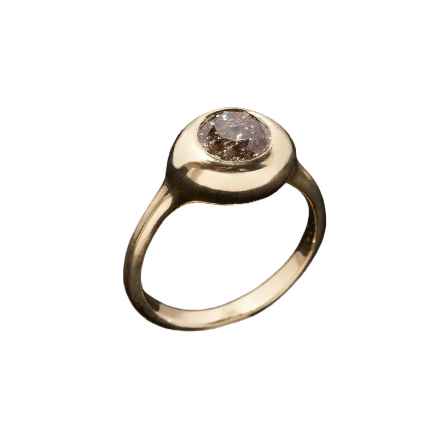 Ten Thousand Things Champagne Desert Diamond Orb Ring. Bezel set in high polish yellow gold.