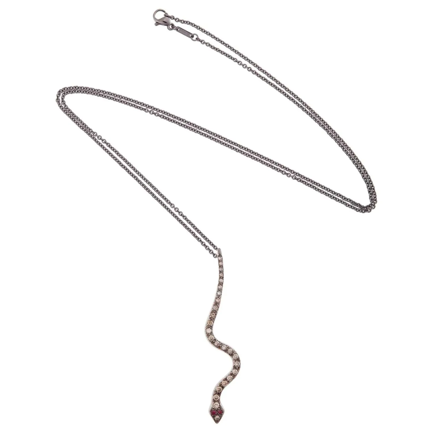 Ileana Makri Big Snake Pendant Handcrafted 18k Oxidized Rose Gold with Champagne Diamonds and Ruby Eyes. A Striking Piece of Jewelry, and Iconic Ileana Makri Motif, Fit for the Most Discerning of Tastes. Pendant only.