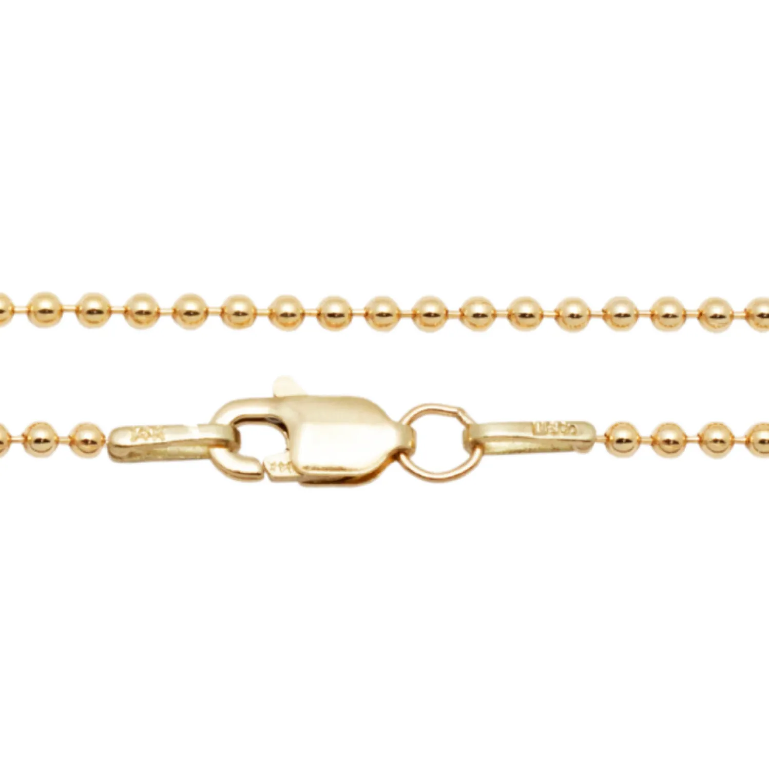 MUSE Classic yellow gold ball chain necklace in high polish yellow gold. Lobster Clasp Closure.