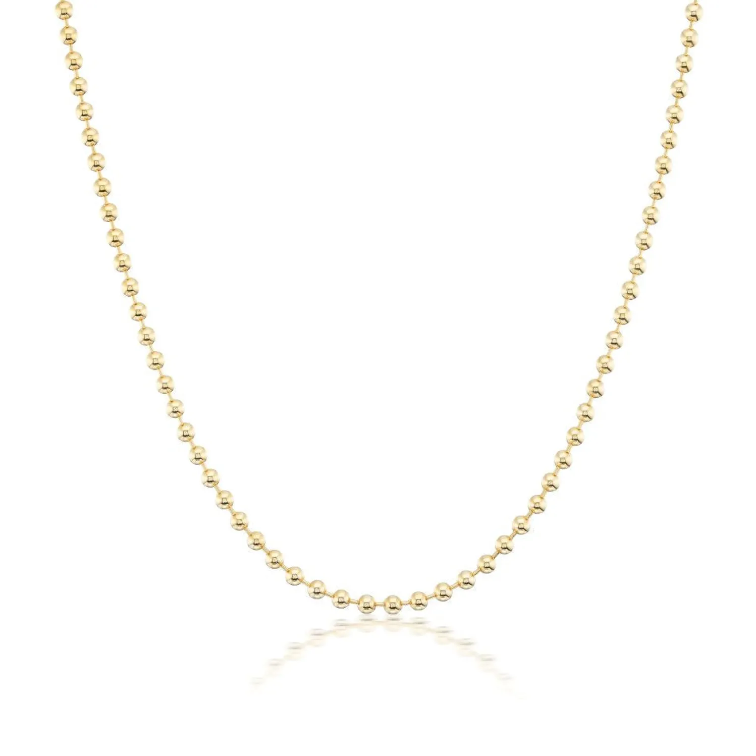 MUSE Classic yellow gold ball chain necklace with 3mm balls. Lobster Clasp Closure.