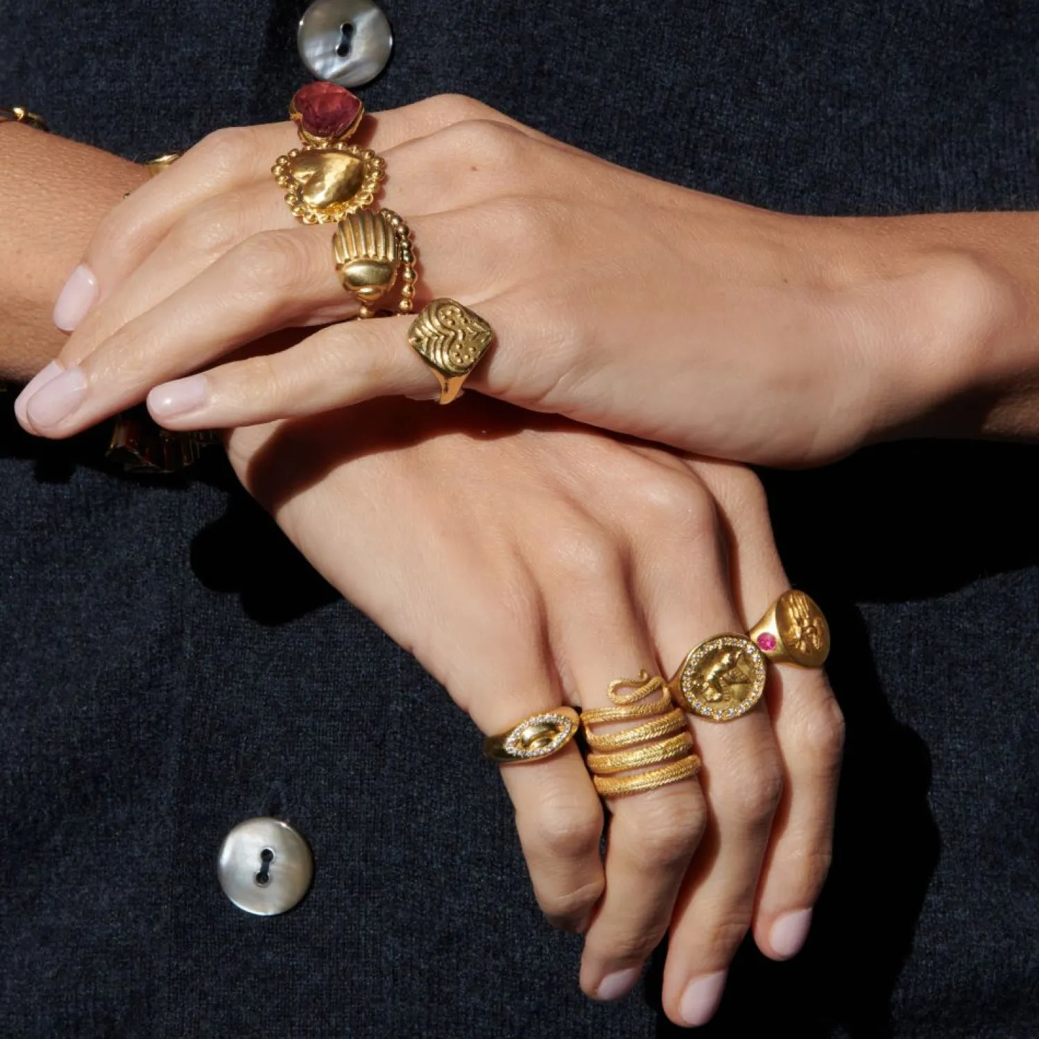 Materials: 18k yellow gold, champagne desert diamonds