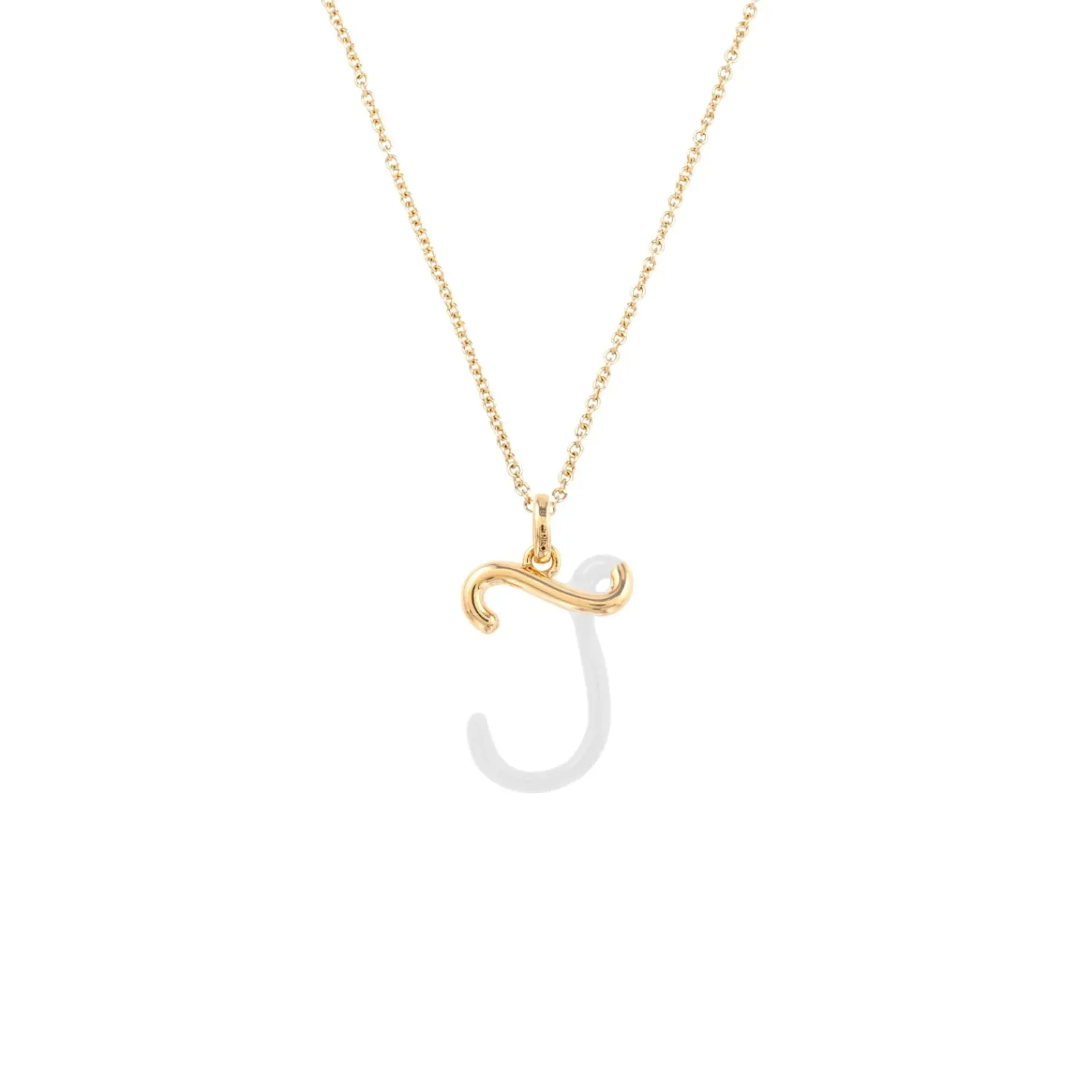 Bea Bongiasca Initial Alphabet necklace with White Hand-painted Enamel ‘J’ Pendant. Chain included.