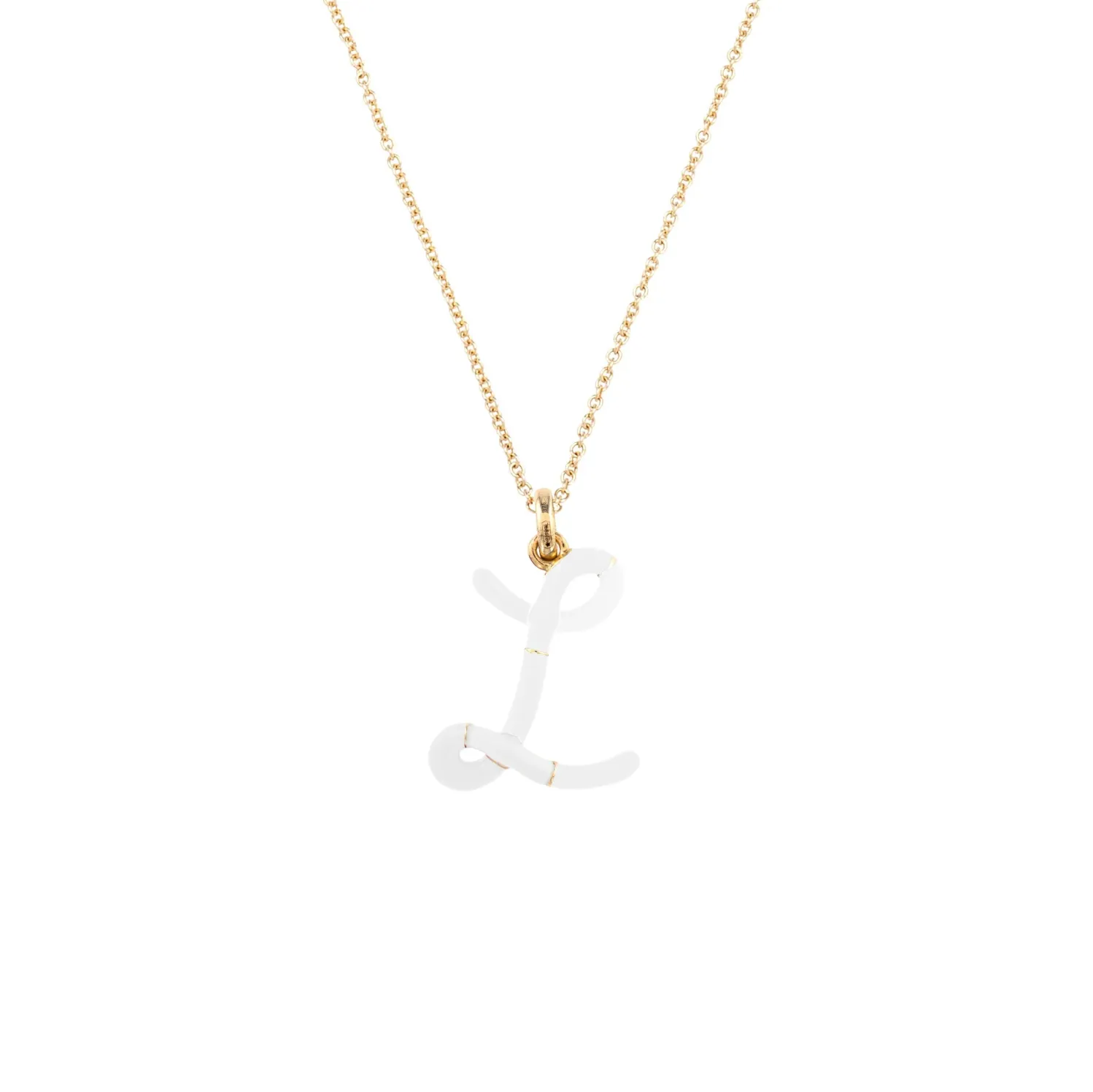 Bea Bongiasca Initial Alphabet necklace with White Hand-painted Enamel ‘L’ Pendant. Chain included.