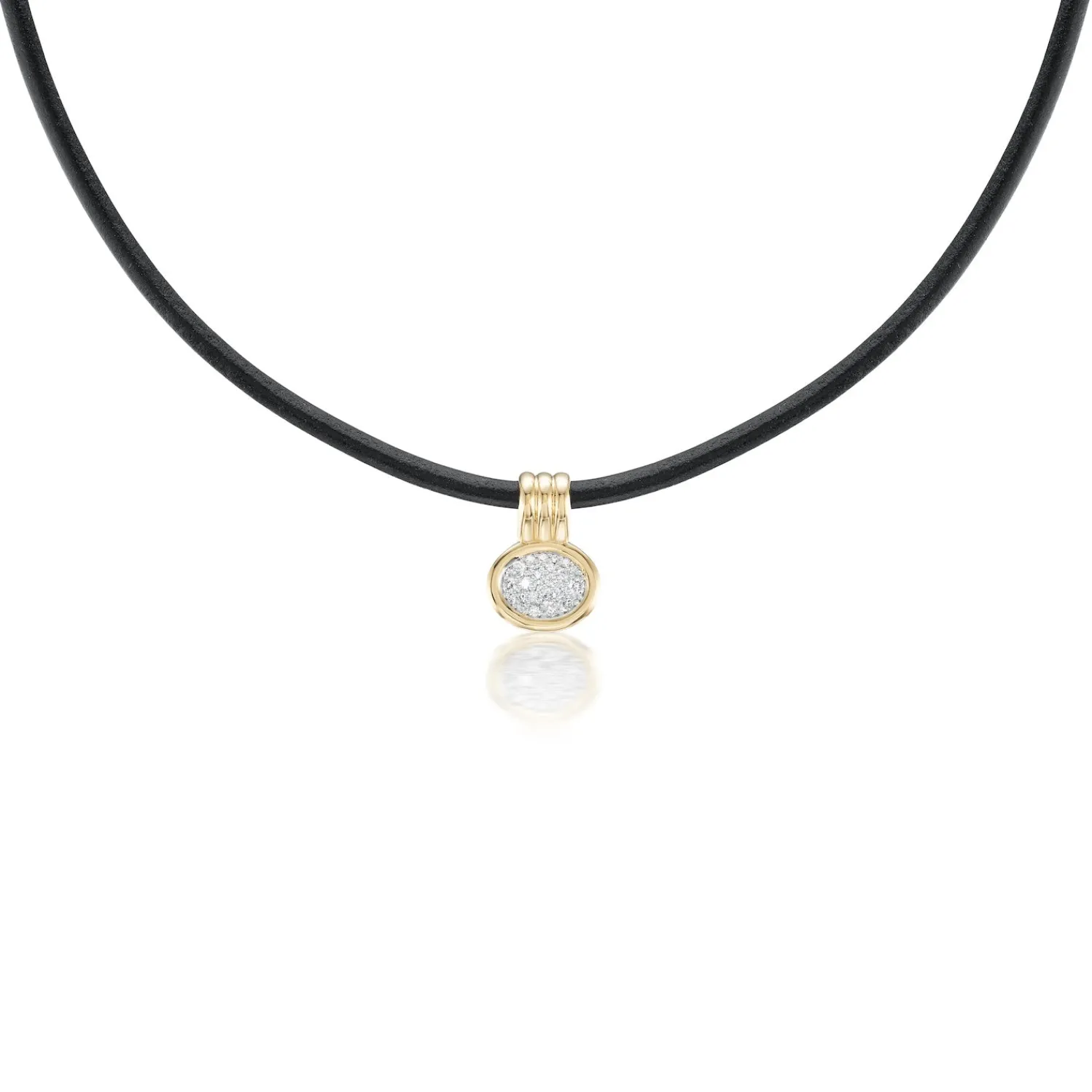 BECK Scuba Choker with Mini White Diamond Pavé Pendant in Black Leather and Yellow Gold.