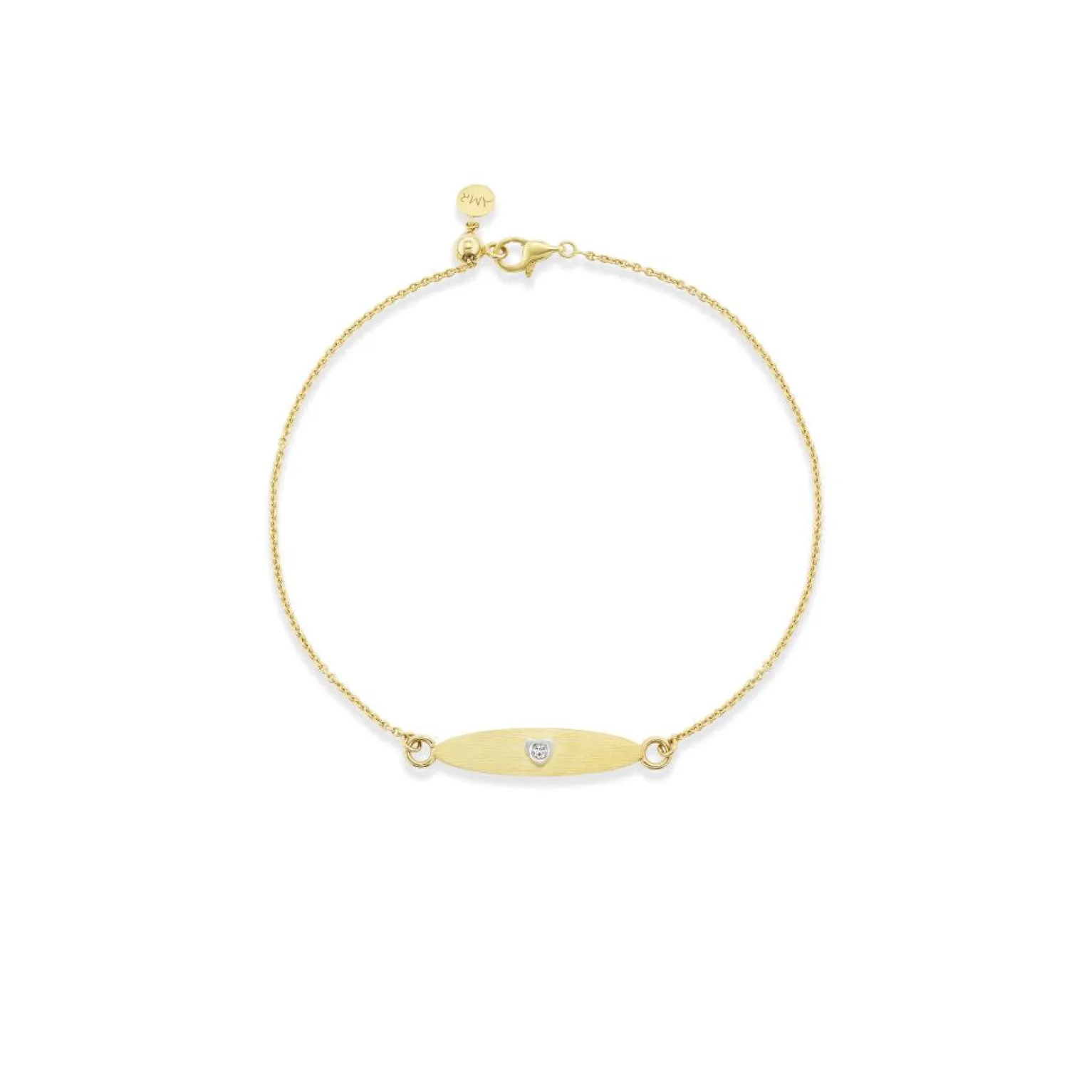 Anna Maccieri Rossi Ora Silk Plaquette Bracelet and White Gold Heart with Diamond Accent in Yellow Gold.