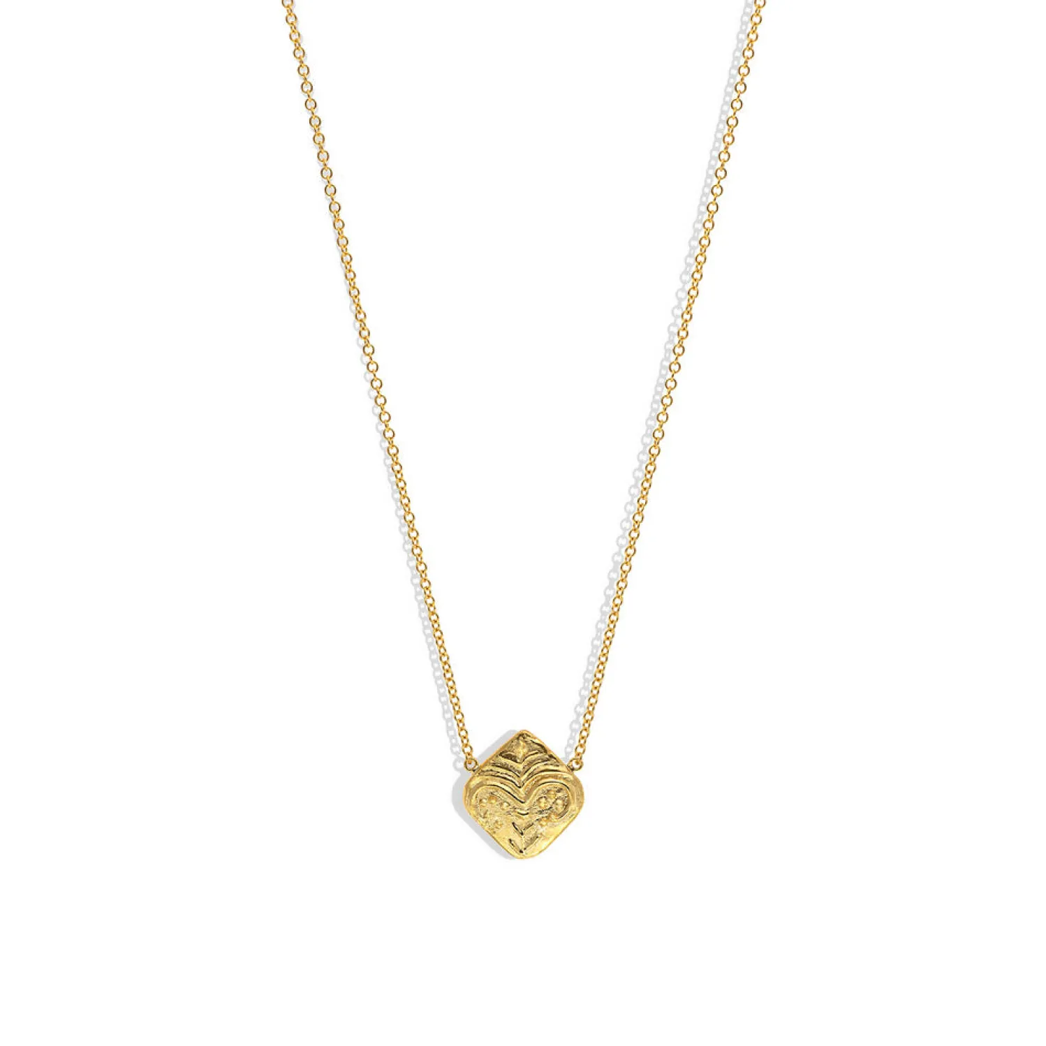 Christina Alexiou yellow gold plaque emblazoned with Greek palm frond anchored to an adjustable length chain. Palmyra, Syria, is renowned for its Greco-Roman, Persian, and local ruins, serving historically as a crucial oasis trade hub. an ancient symbol of peace and prosperity
