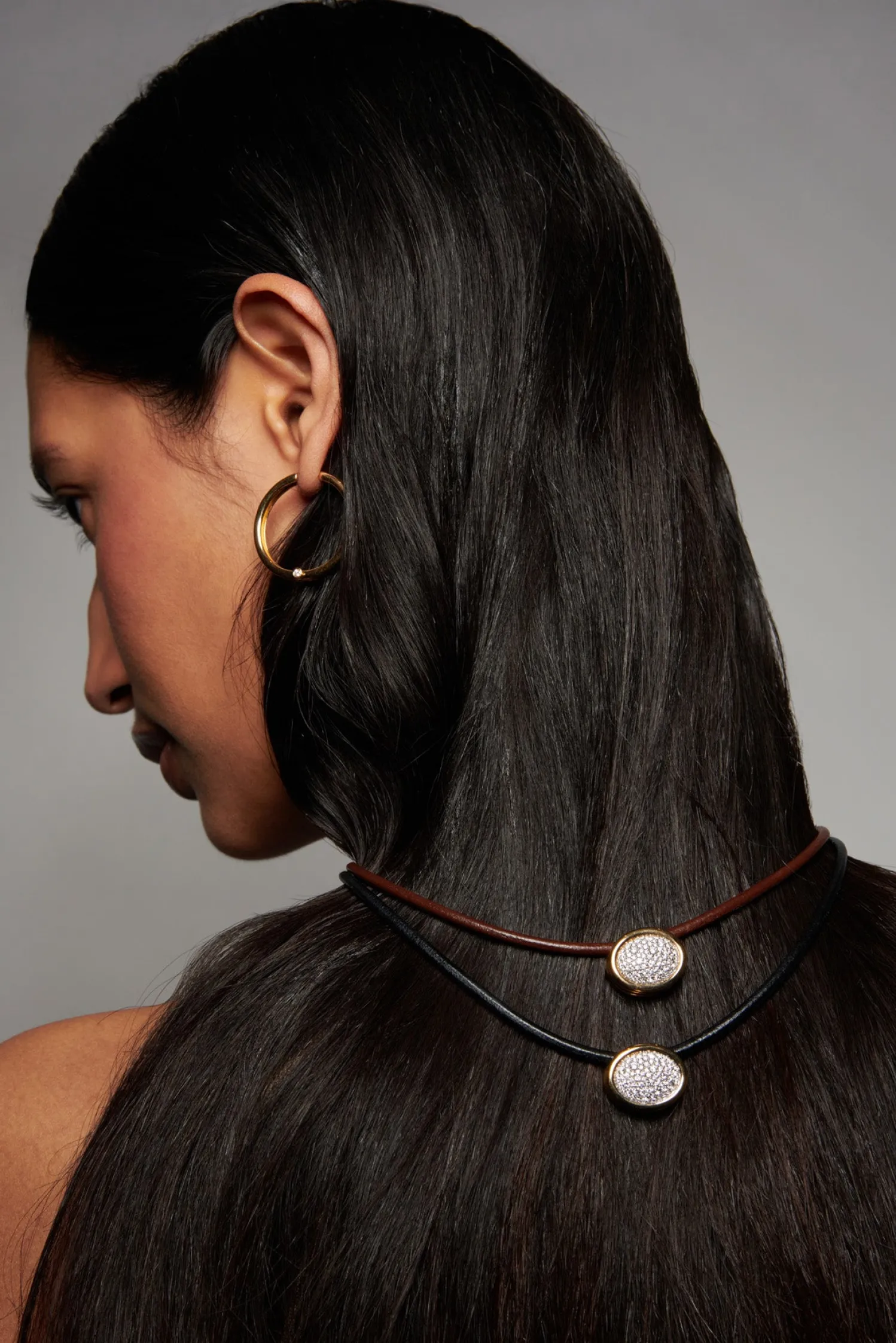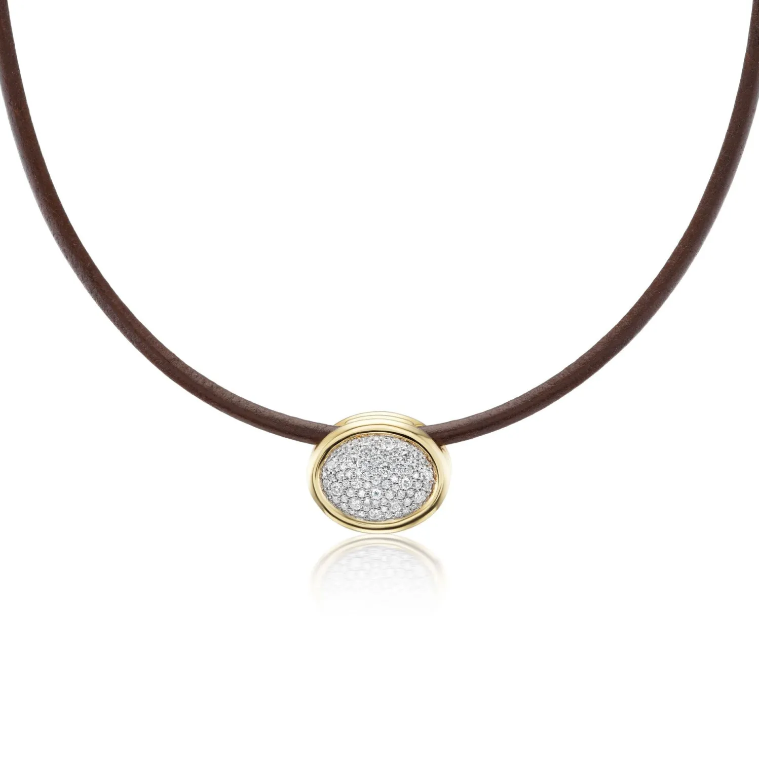 BECK Scuba Choker with Pavé White Diamonds on Brown Leather and Yellow Gold Cord