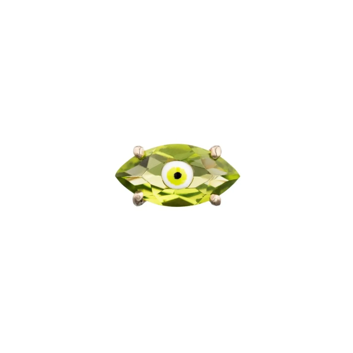 Bea Bongiasca Fortuneye stud earring with marquise cut peridot and circular enamel in wisteria, white and black. Push back, sold as single.