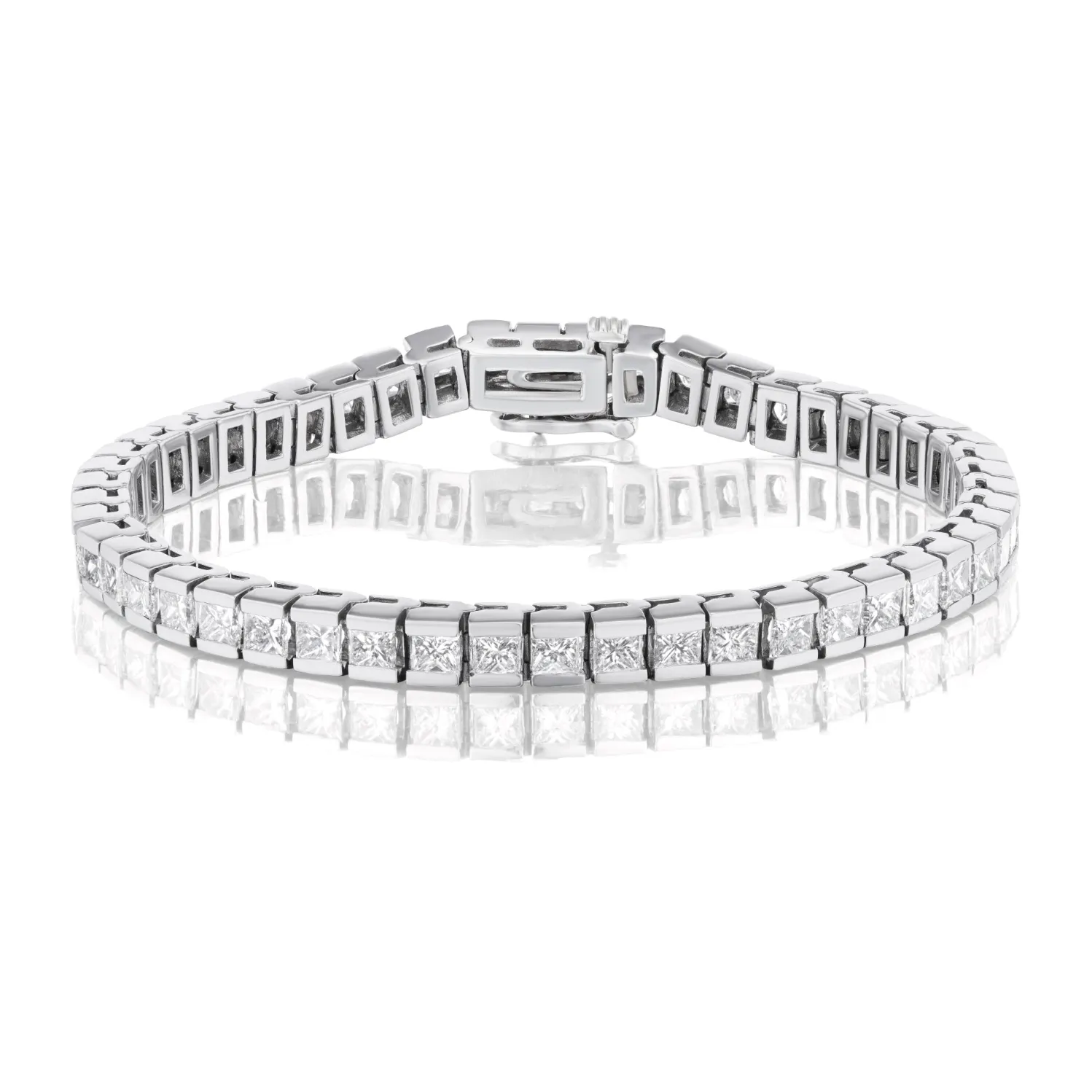 Platinum Diamond Tennis Bracelet with 50 princess cut white diamonds. This style is modern, meaning it was made within the last 20 years.