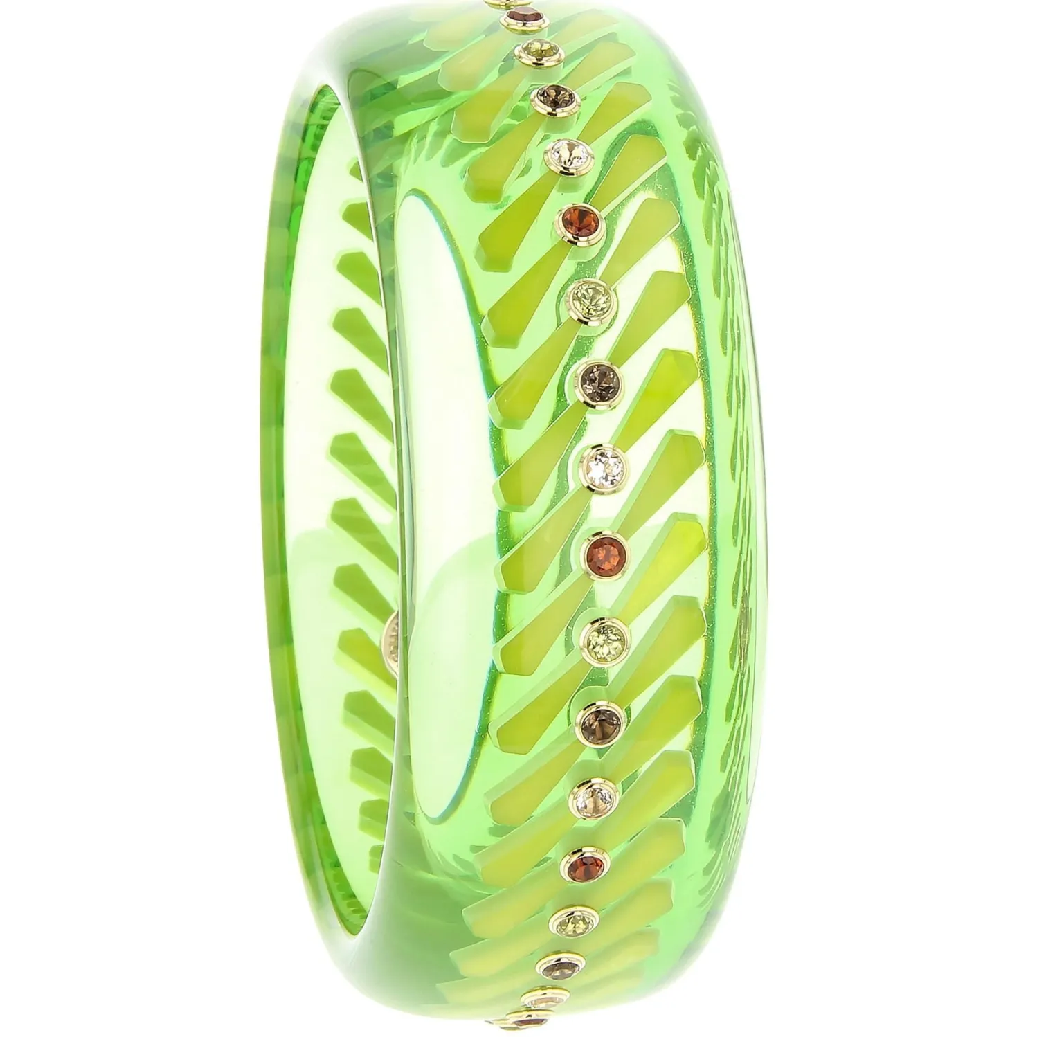 Mark Davis “Gracie” Vintage Prystal Bangle with Tiny Tie-shaped Inlay Detailing. Citrine, Mozambique Garnet and White Topaz set in Yellow Gold. Each Mark Davis Piece is One-of-a-Kind and Sustainably Produced in South Carolina. Prystal Eieces are Especially Eare.