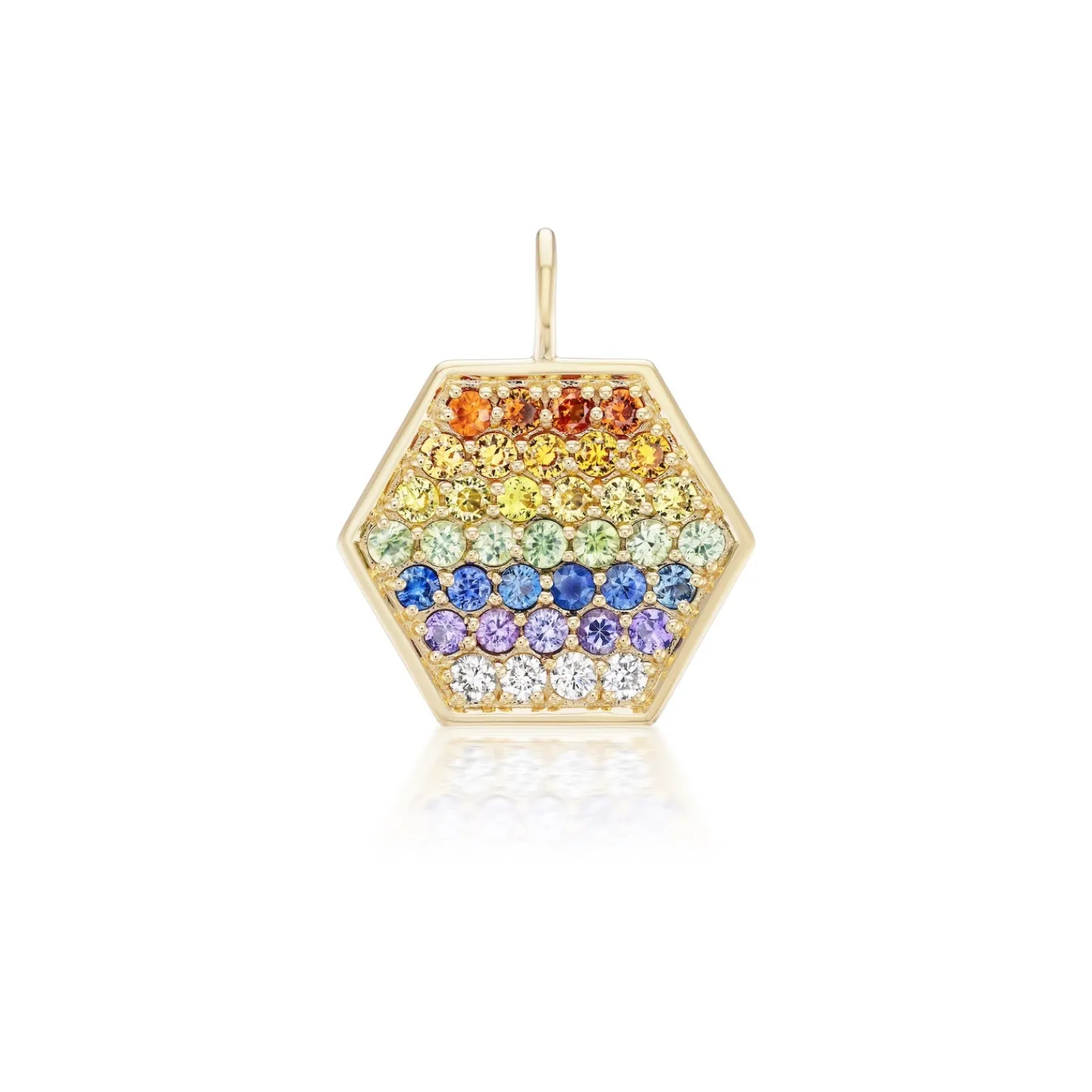 Julia Chafé Rainbow Sapphire & Diamond Hexagon Charm in 14k yellow gold.