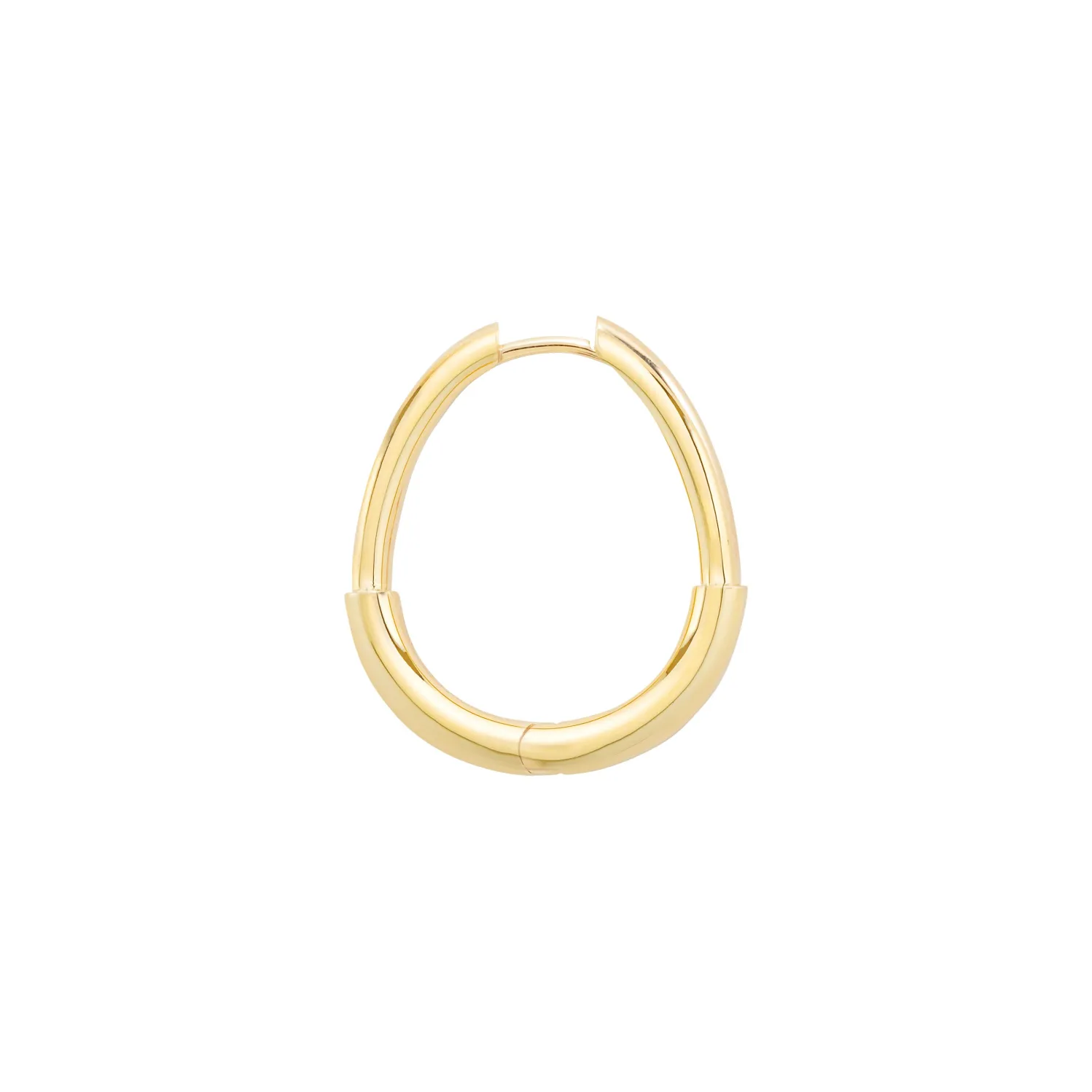 Mellerio Riviera Creole Hoop Earring In Plain, High Polish Yellow Gold. Hinged at Bottom Center. Sold as a Single.