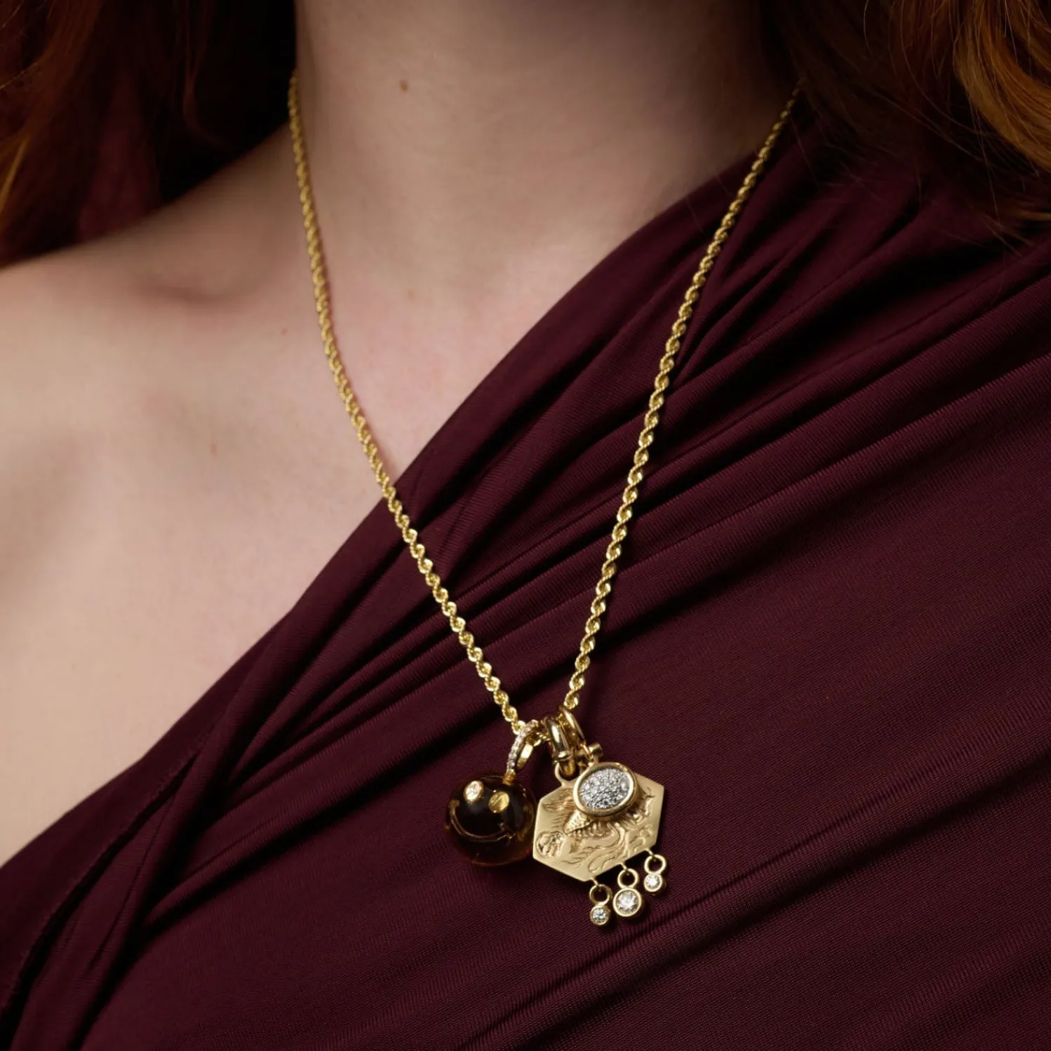 Violette Joaillerie Smiley Face Charm with diamond winking eye. Openable pave diamond bale.