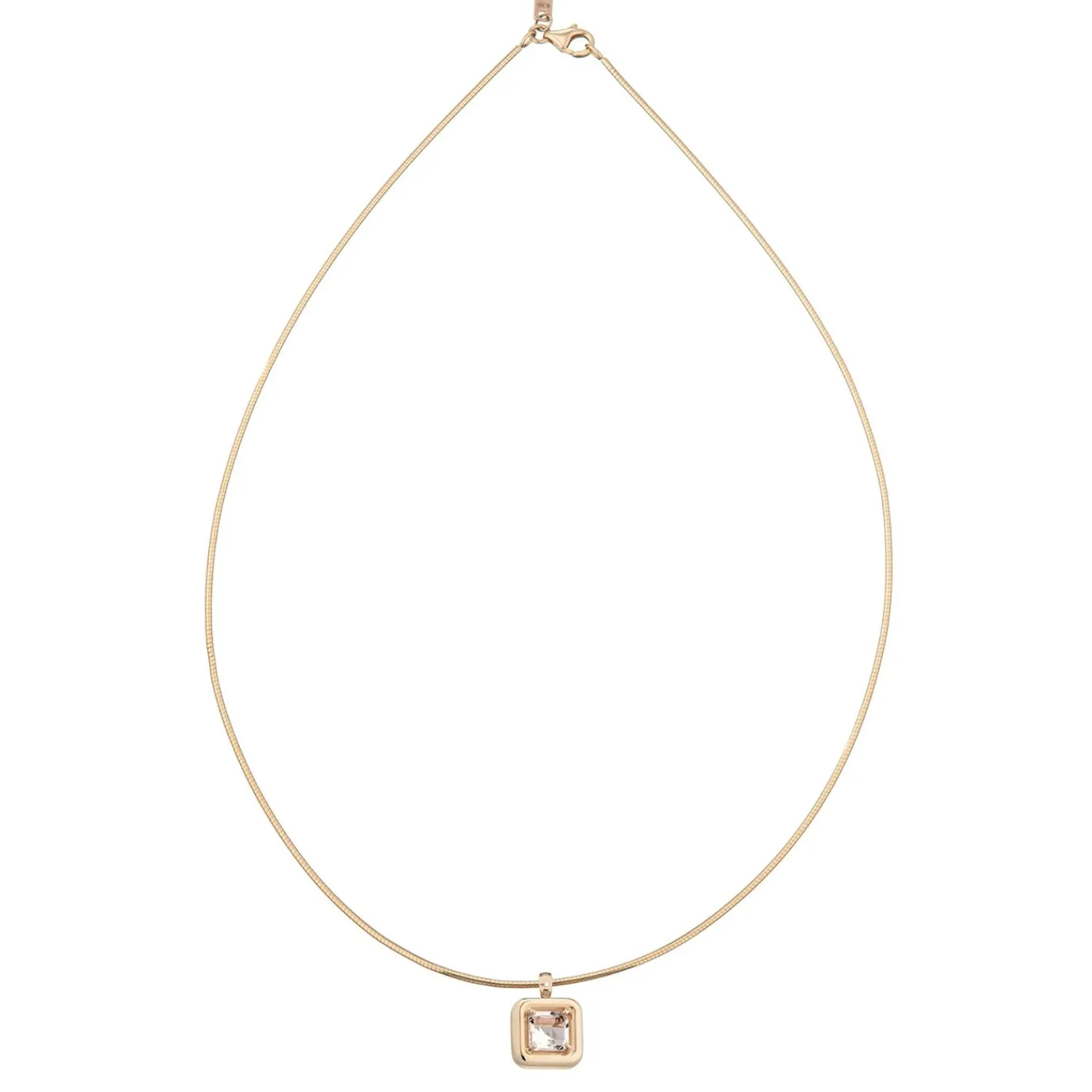 Bea Bongiasca Square Cut Rock Crystal Pendant Necklace in Yellow Gold.