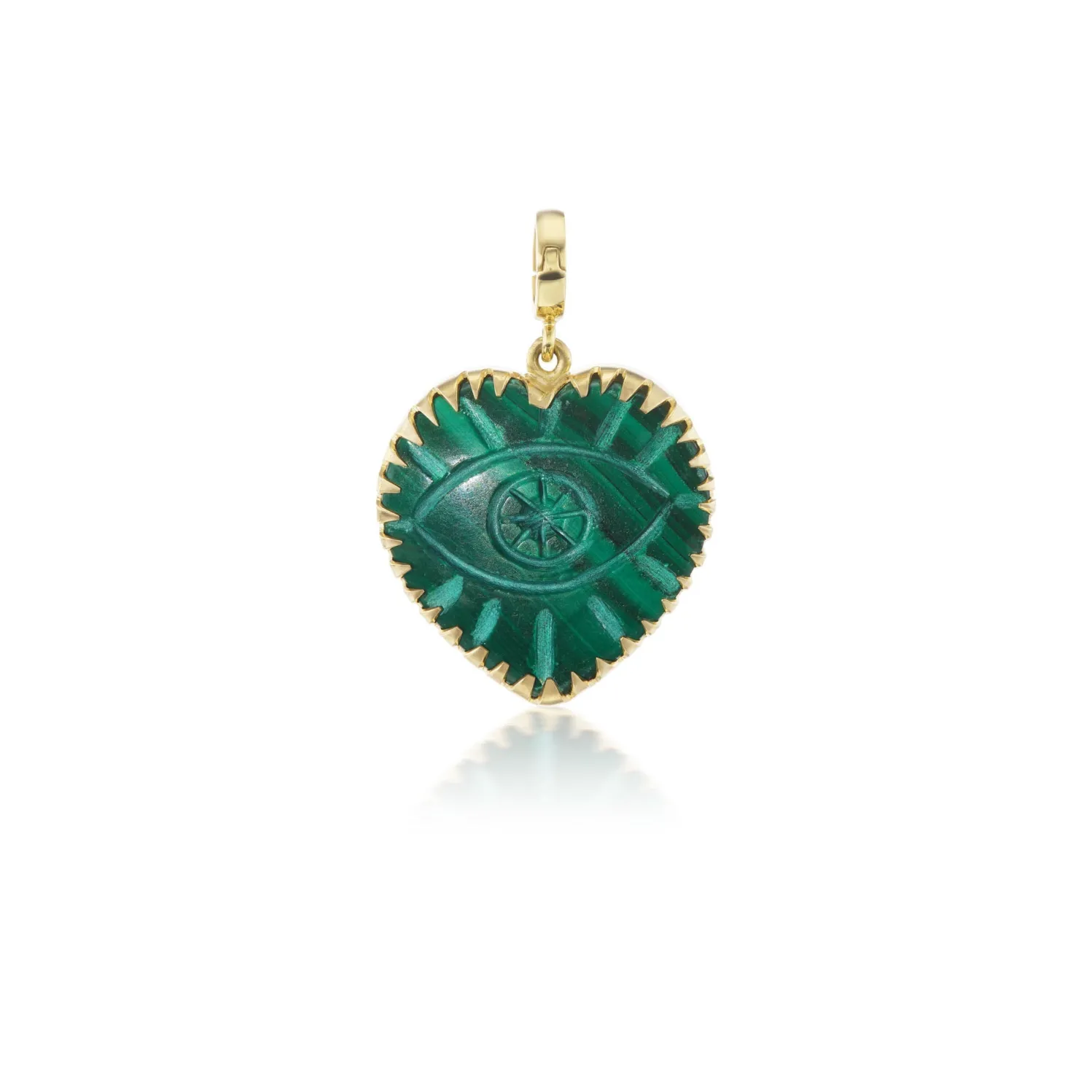 Christina Alexiou Tina malachite heart charm with carved evil eye.