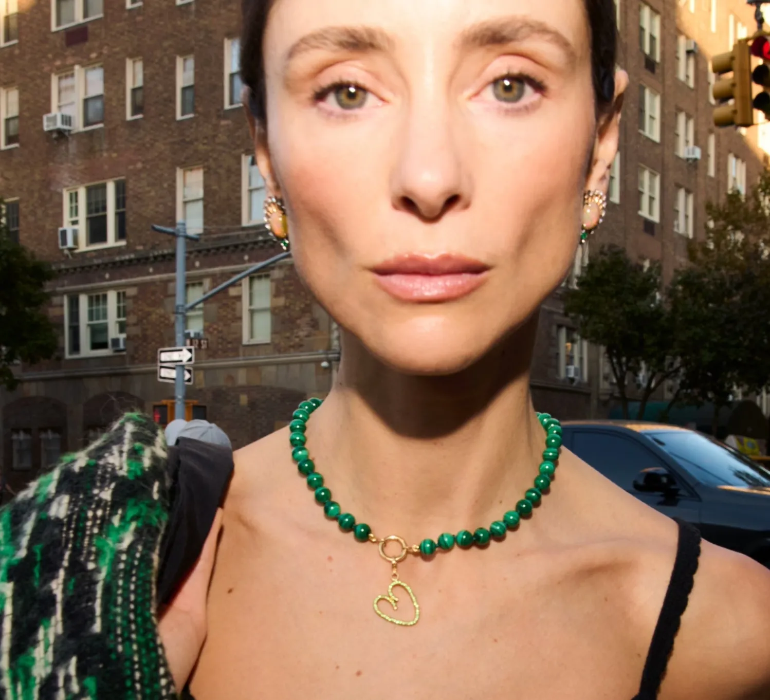 Lorraine West open heart charm in gold with a tsavorite pavé.