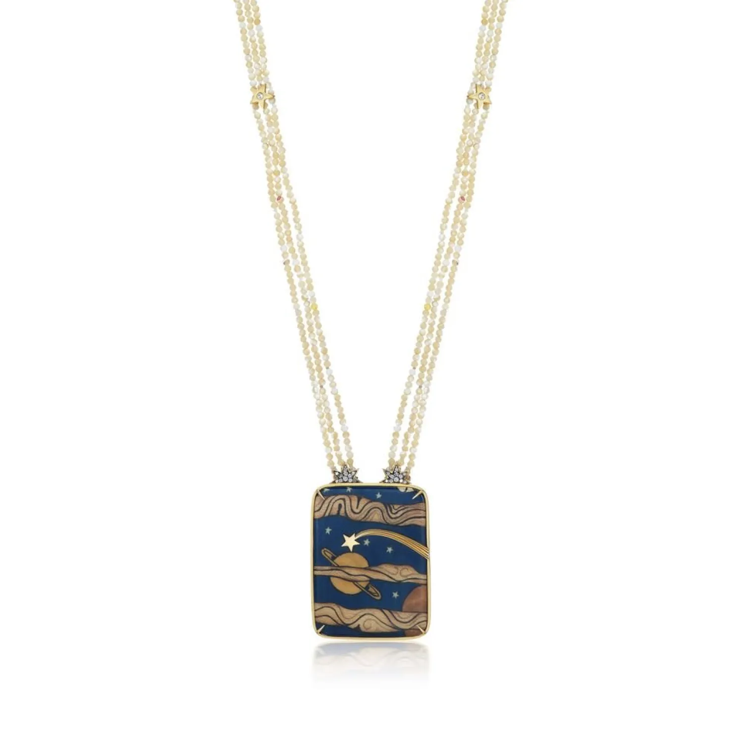 Silvia Furmanovich “Via Lactea” or The Milky Way Marquetry Necklace with White Diamond Accents and Mother-of-Pearl Beads with Inset Golden Stars.