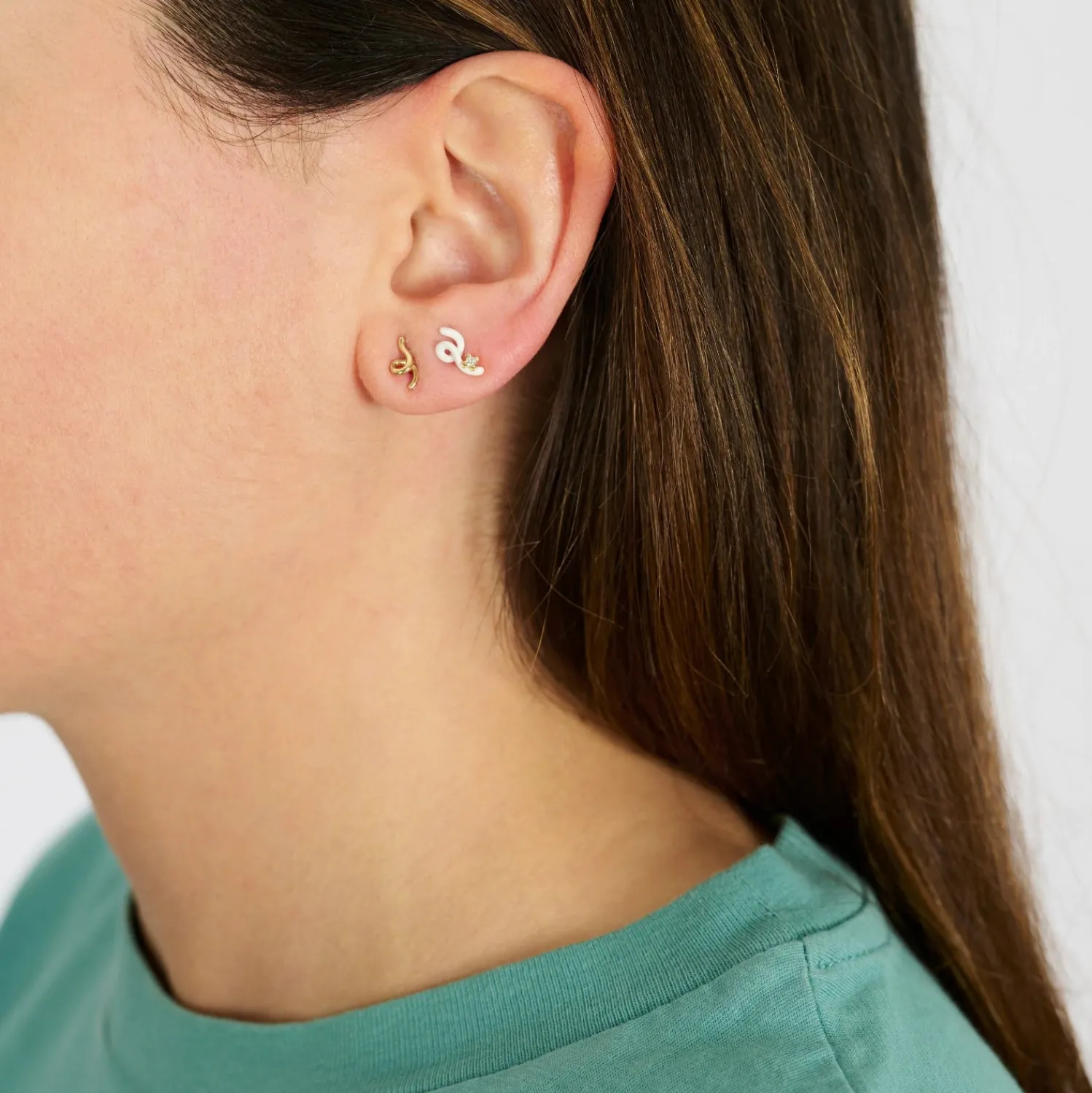 Bea Bongiasca White Diamond and Hand-painted White Enamel Mini Loop Stud. Sold as a Single. Pushback.