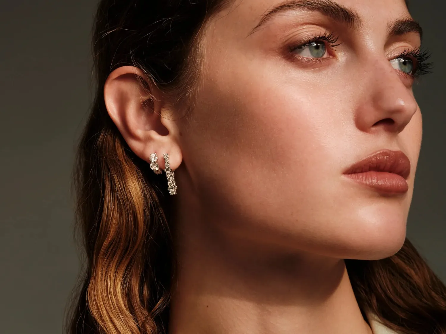 Ileana Markri Large Oval Rivulet White Diamond Hoops in White Gold. These Chic Hoops Feature Alternating Round and Baguette-cut Diamonds. Their sculptural Oval Silhouette Lends a Contemporary Edge to a Classic Form.
