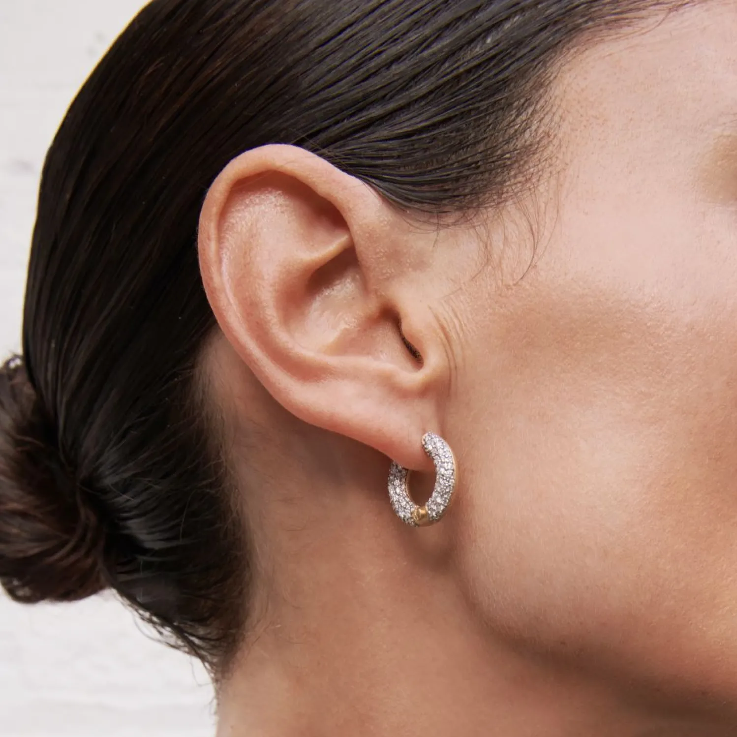 BECK Small Hinged Hoop Earrings with White Diamond pavé and Yellow Gold.