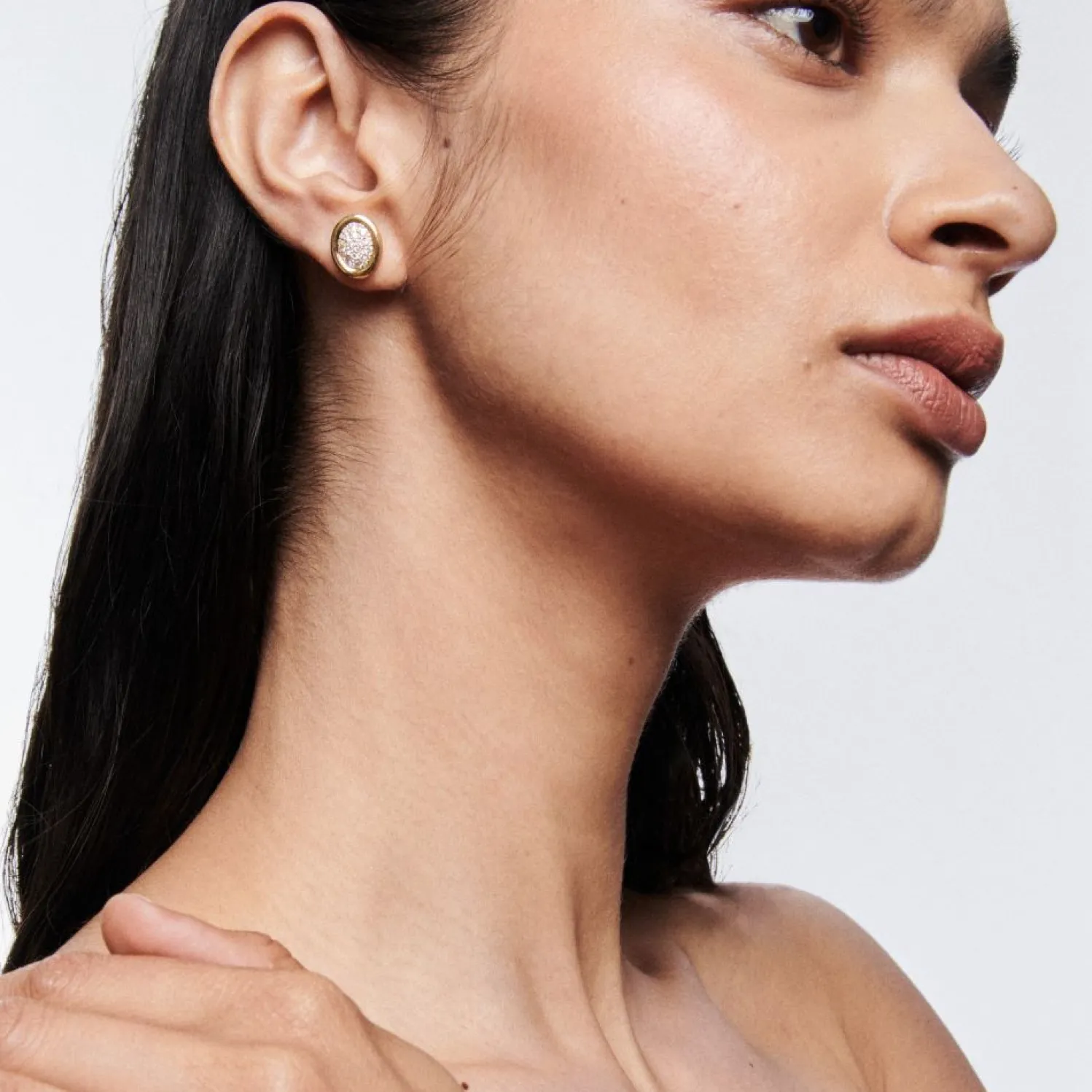 BECK Scuba Studs in White Diamond Pavé and Yellow Gold.