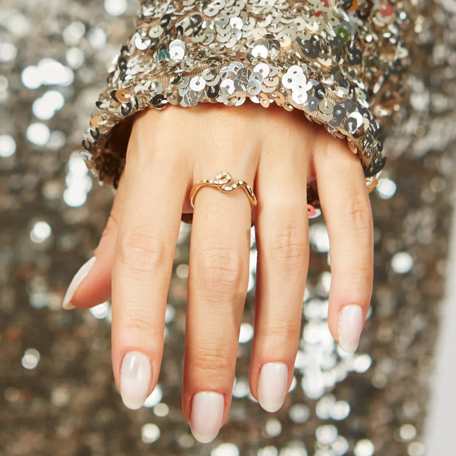 Bea Bongiasca Small Yellow Gold wave ring with white diamond polka dots.
