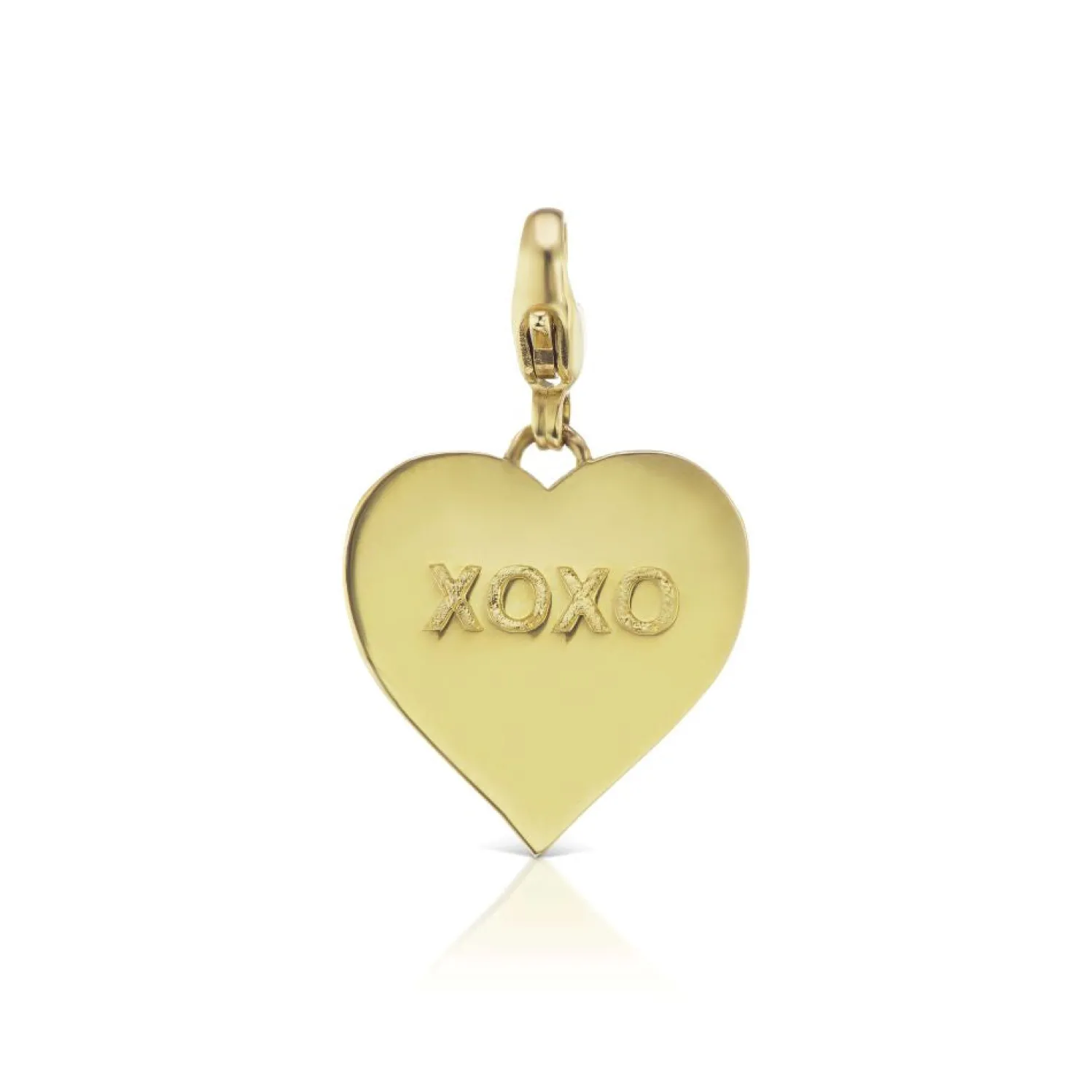 Yellow gold heart charm with XOXO engraving and lobster clasp.
