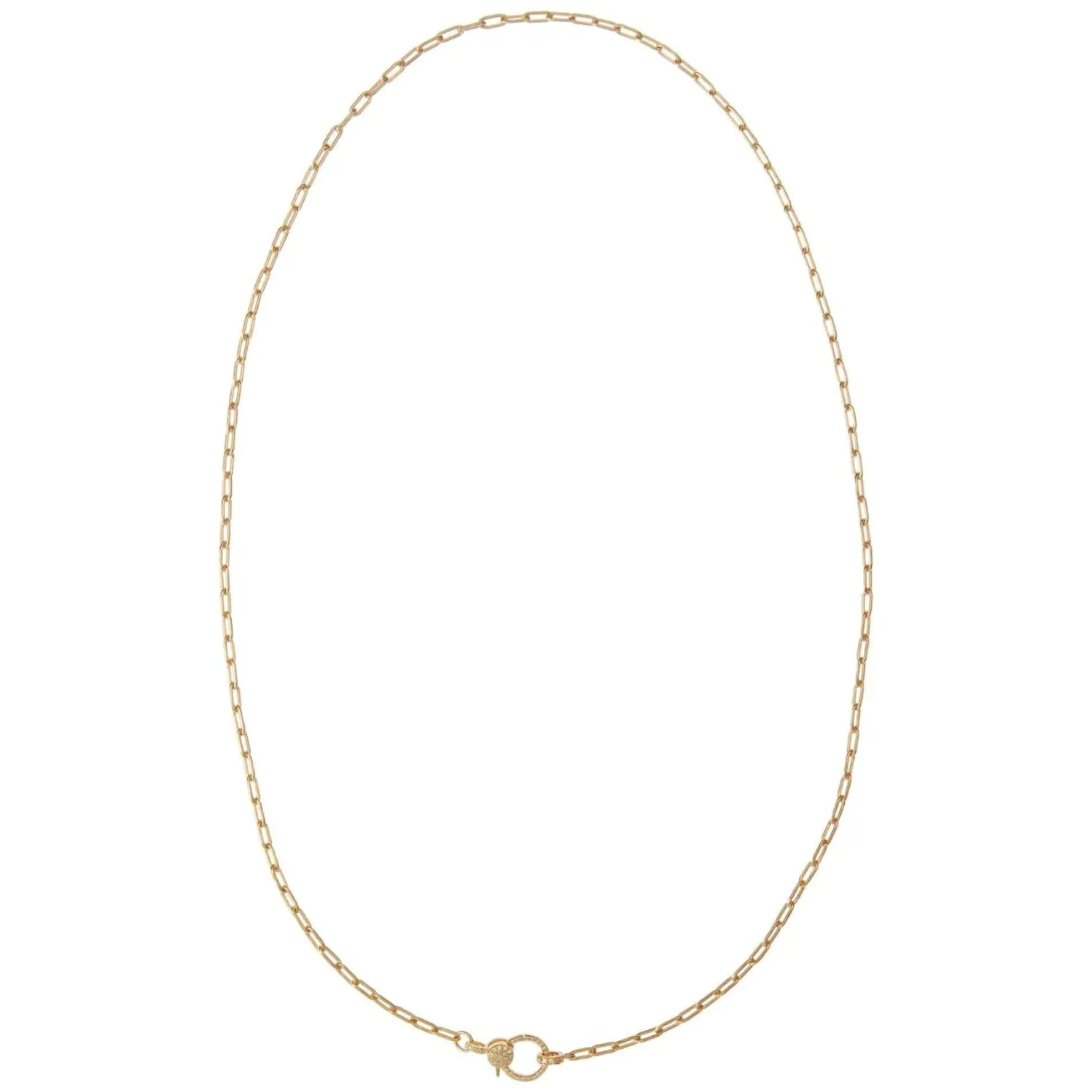 Ileana Makri Elongated Link Chain with Small Pavé Light Champagne Coloured Diamond Lock in Yellow Gold. Clasp is Worn at Front on its Own or With Your Favorite Ileana Makri Charm (plays well with others)!