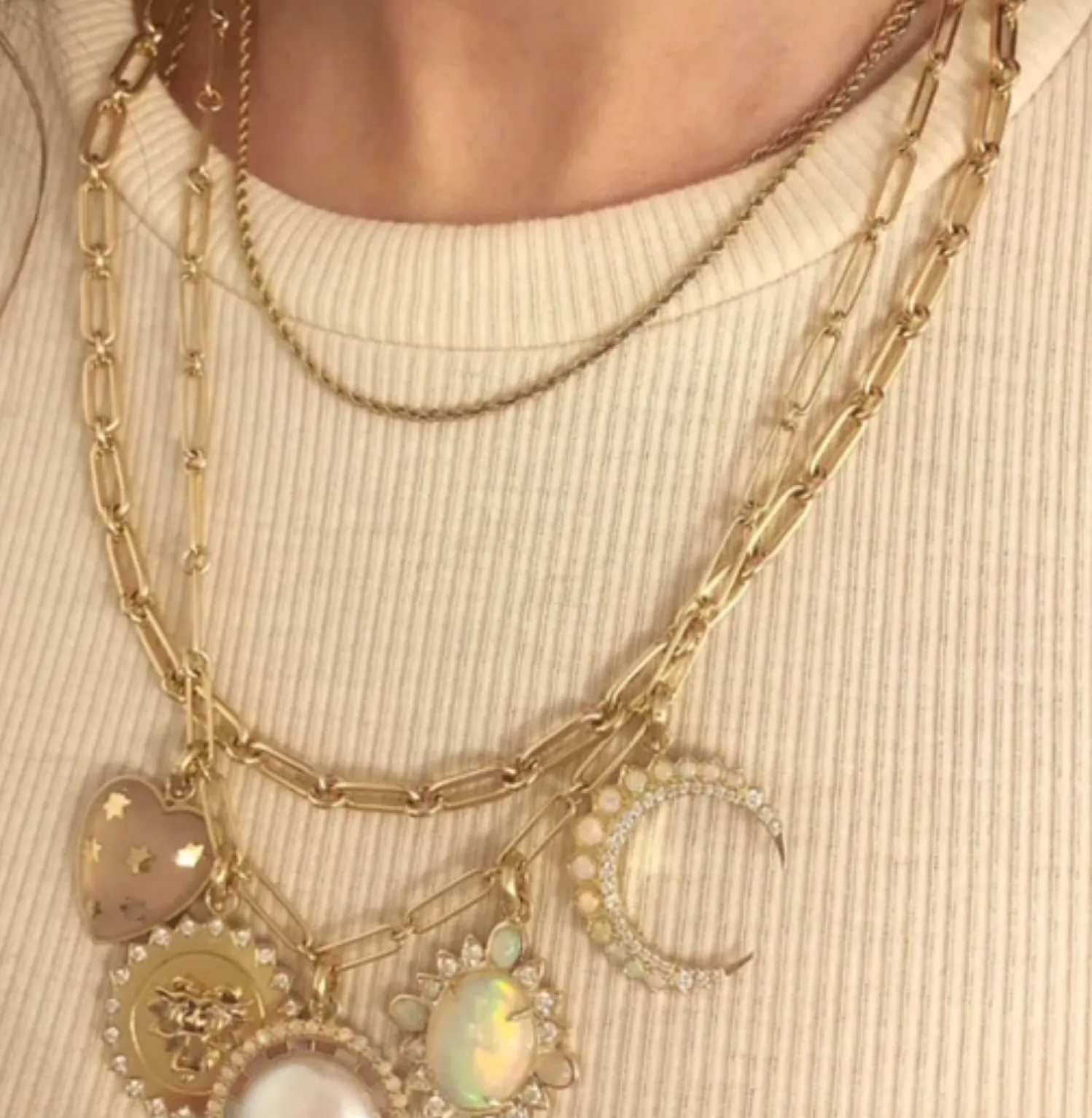 Storrow Alternating elongated paperclip Link Grover Chain Necklace in yellow gold. Perfect for adding charms of any type to. Can be adjusted to any shorter length by simply using clasp on any elongated link.