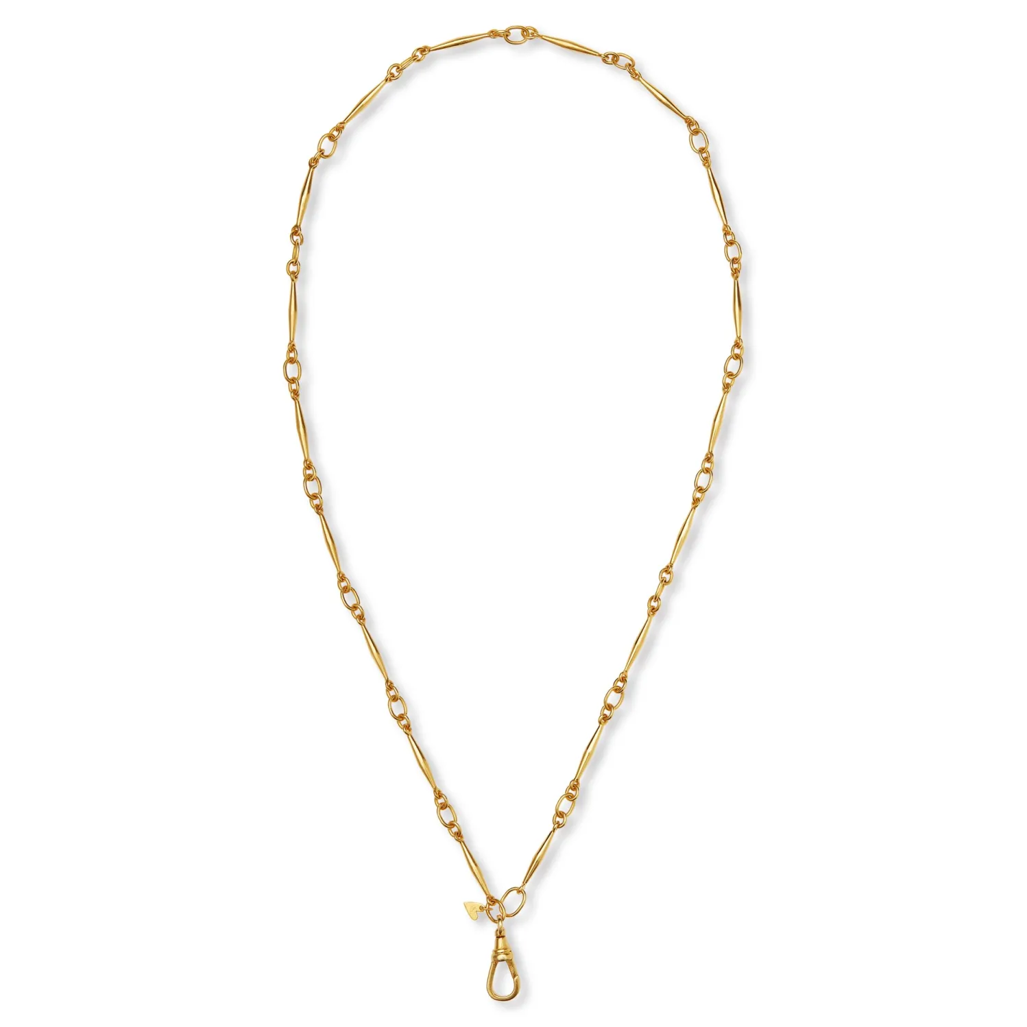 Christina Alexiou Alternating Link Watch Fob Chain Necklace in Yellow Gold. In the style of antique pocket watch fobs with clasp at the end.