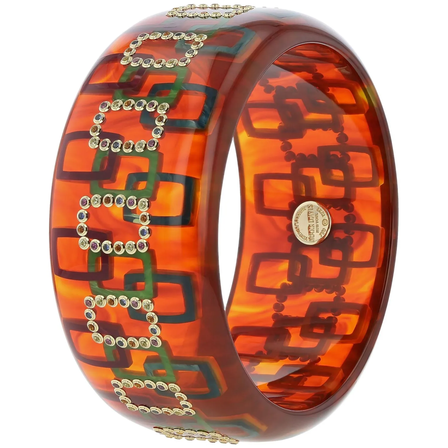 Mark Davis “Milana Remi” Vintage Bakelite Bangle with Retro-Themed Inlay Detailing with Citrine, Rhodolite Garnet, Peridot, and Blue Sapphire set in Yellow Gold. Each Mark Davis Piece is One-of-a-Kind and Sustainably Produced in South Carolina.