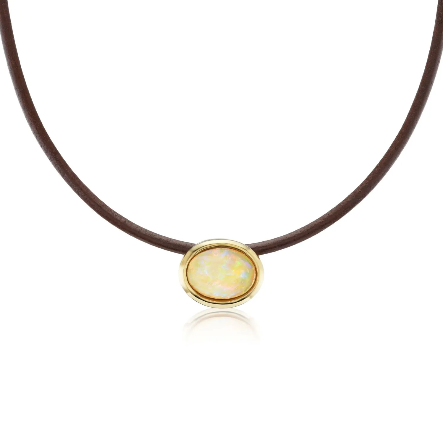 Materials: Opal, Black Leather, 18k Yellow Gold