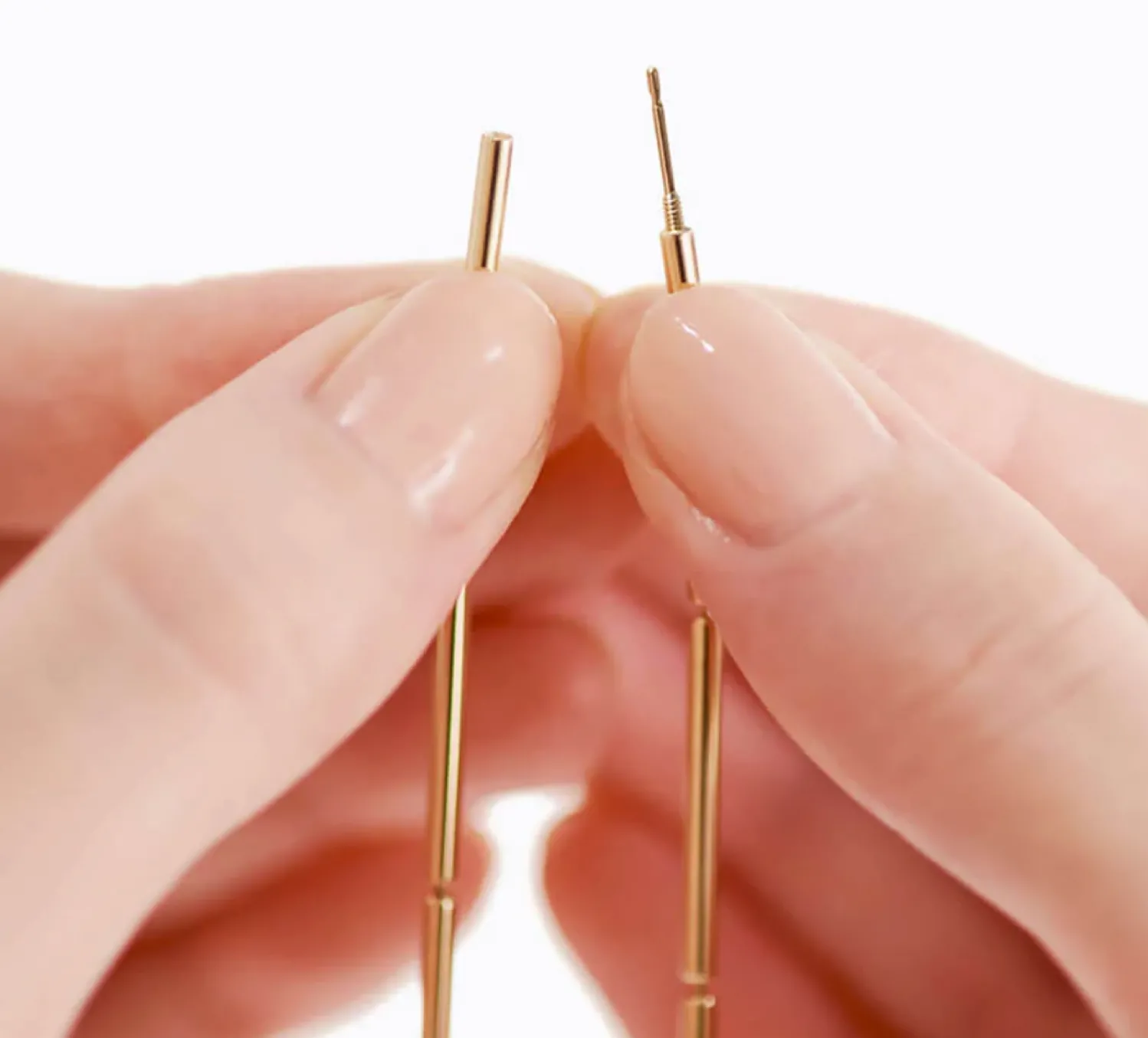 Shihara Tubular Bead Chain Necklace with alternating 2cm and 1cm gold tubes. Each bead is linked with a ball-and-socket configuration making for fluid and sturdy construction. Screw-like Closure. Made in Japan.