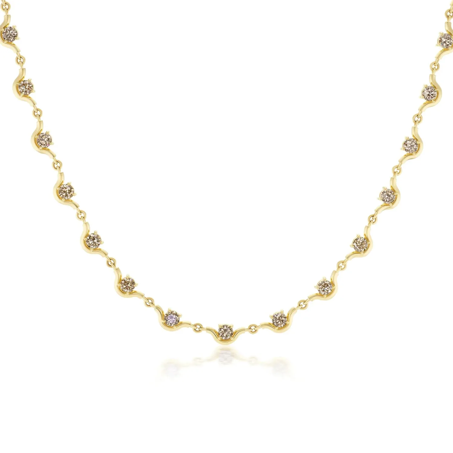 VICE VERSA Louise XL Line Necklace with chunky Desert Diamond links in Yellow Gold. Each scallop-shaped link features desert diamond ~0.85tcw in weight. This is the larger version of the classic Vice Versa Louise Line Necklace. Perfect for both everyday wear and special occasions. One-of-a-kind. Custom Clasp.