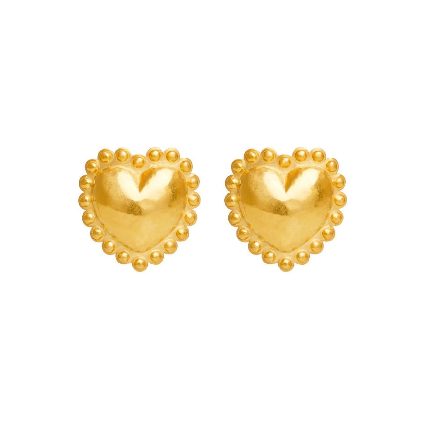 Circle border heart earrings with french clip, medium. Sold as a pair.