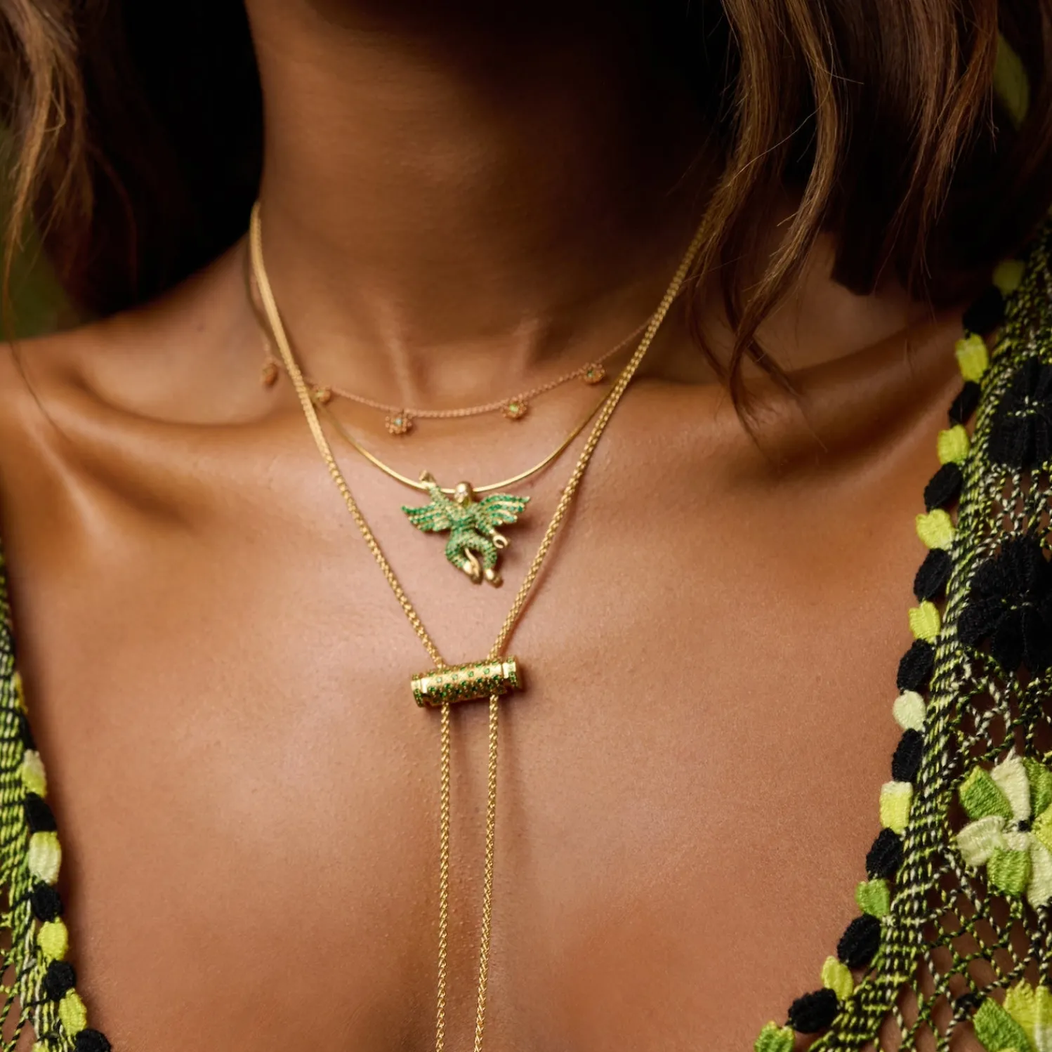 Munnu Emerald Flying Monkey Charm with diamond eyes.