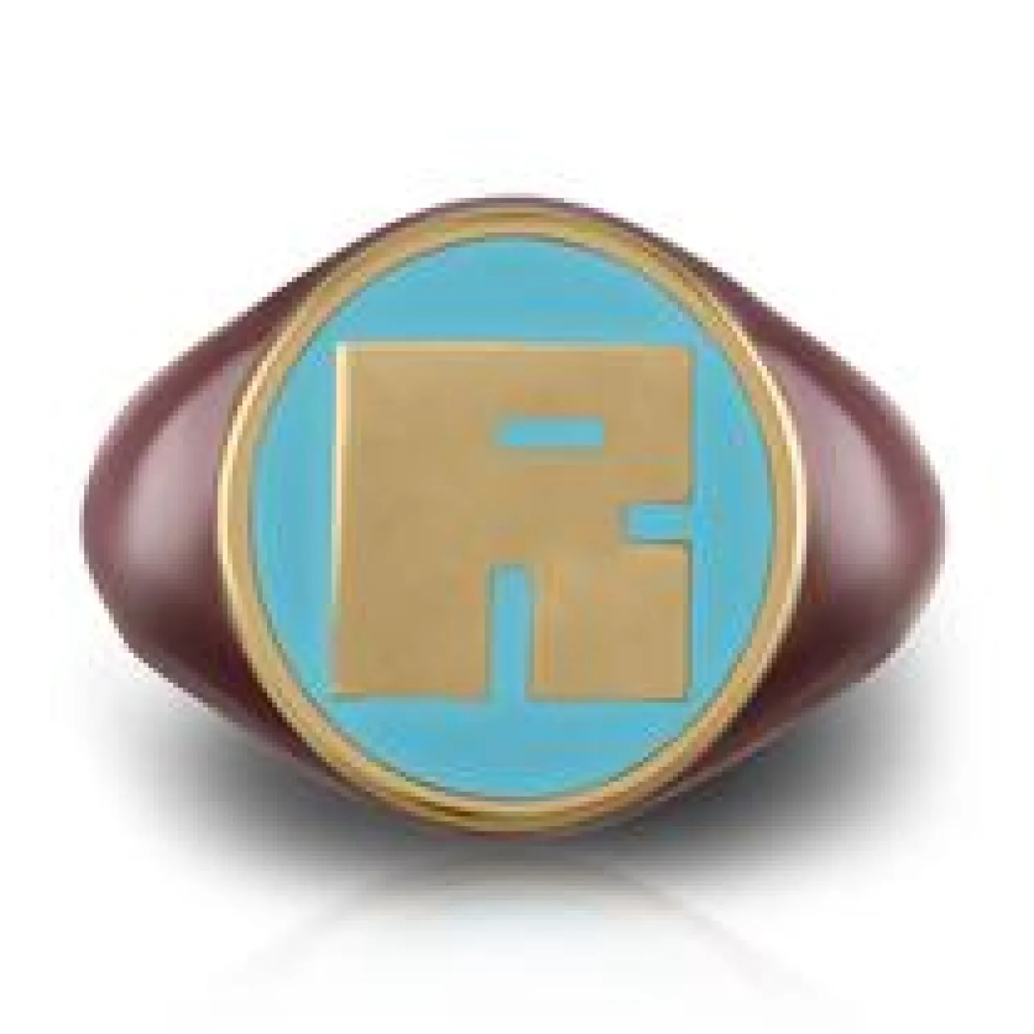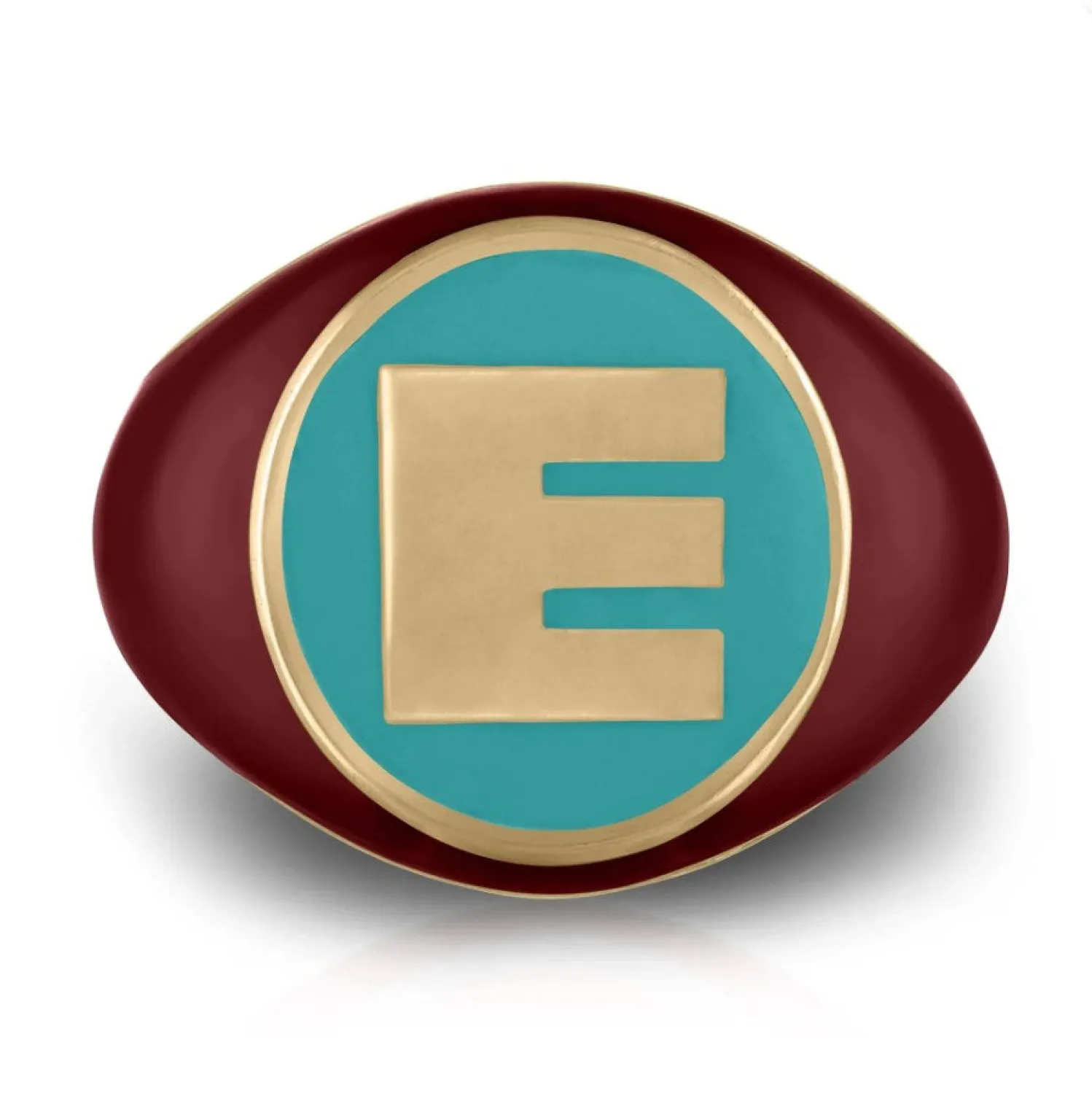 kWIT Pavé Letter Signet Ring in Turquoise and Red Enamel in Yellow Gold. Customize with You or Your Loved Ones Initial. Size 6.5. *Can be ordered in any size