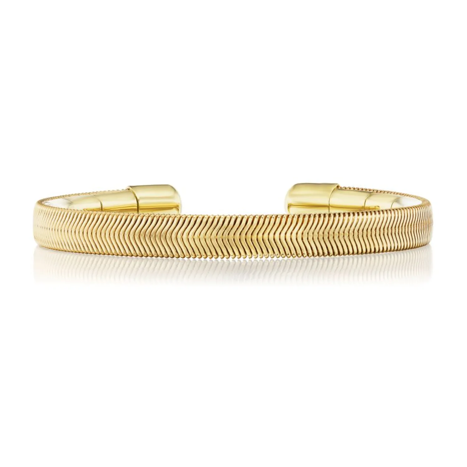 Yellow gold textured chain open cuff bracelet.