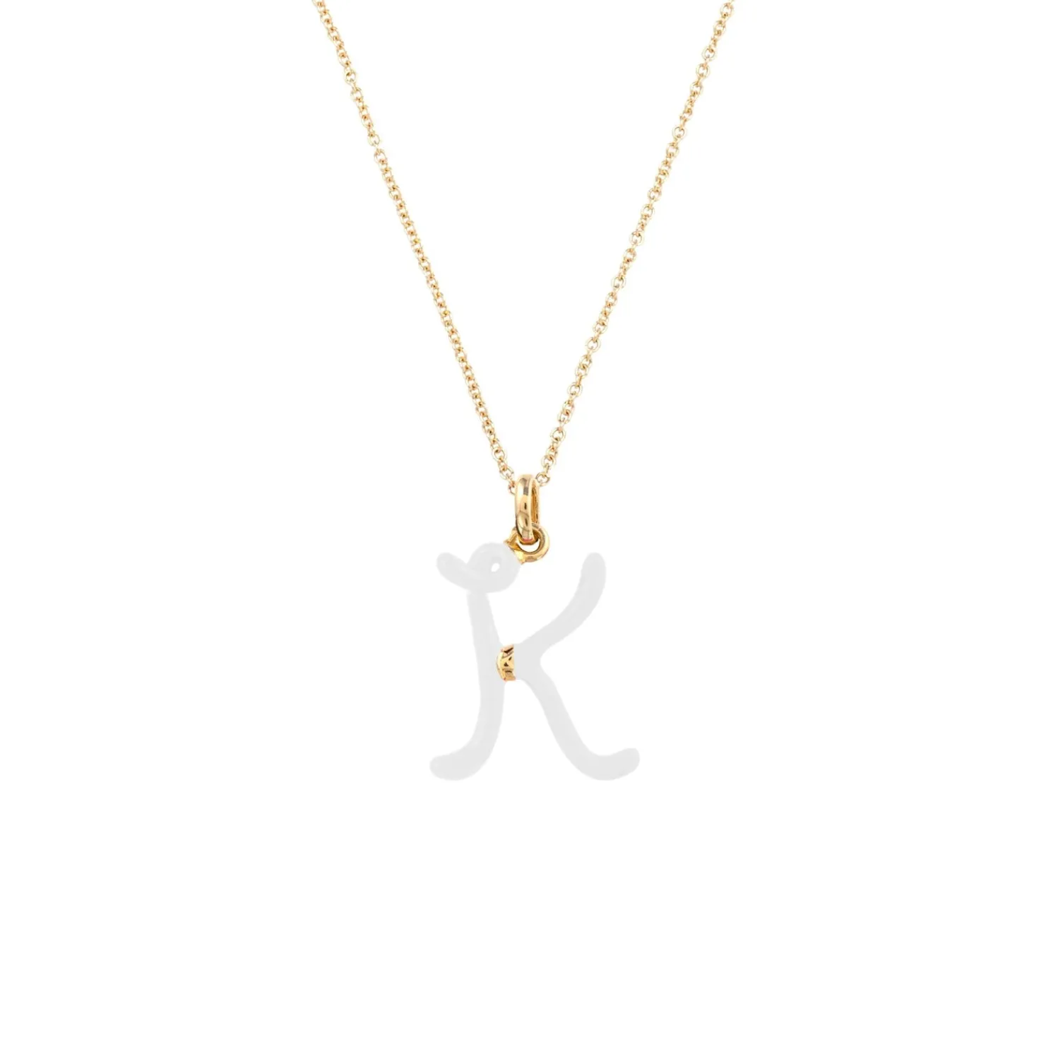 Bea Bongiasca Initial Alphabet necklace with White Hand-painted Enamel ‘K’ Pendant. Chain included.