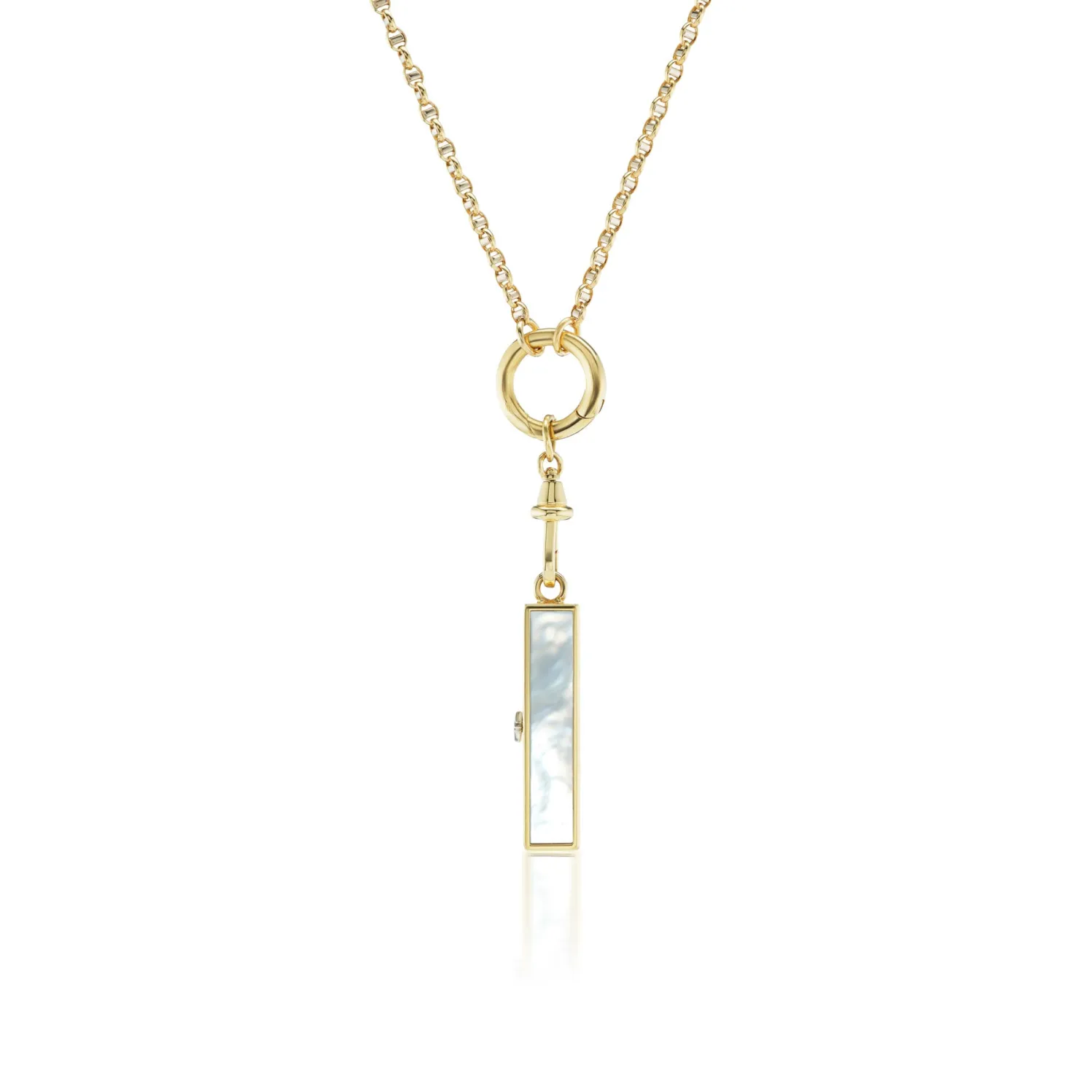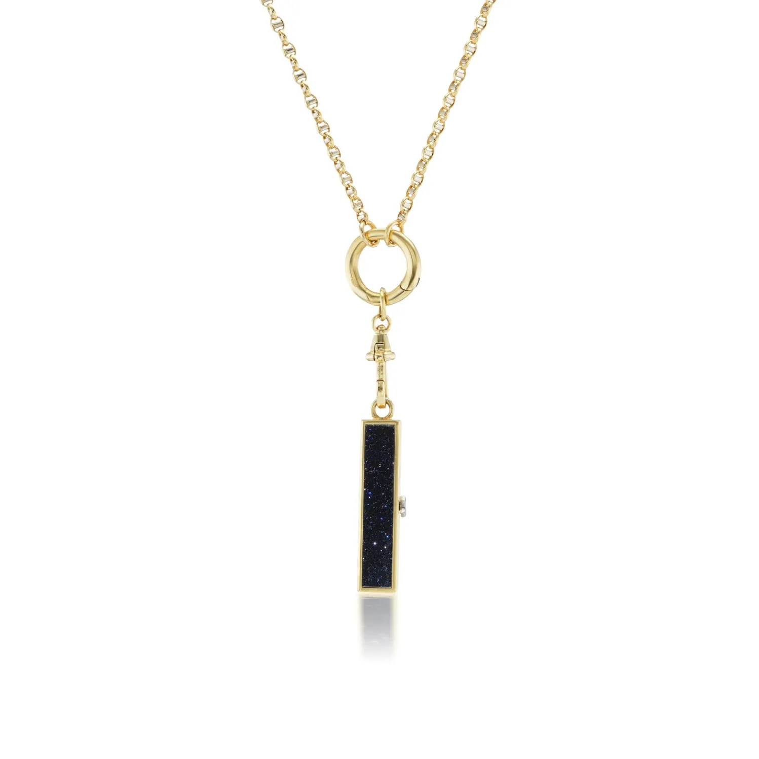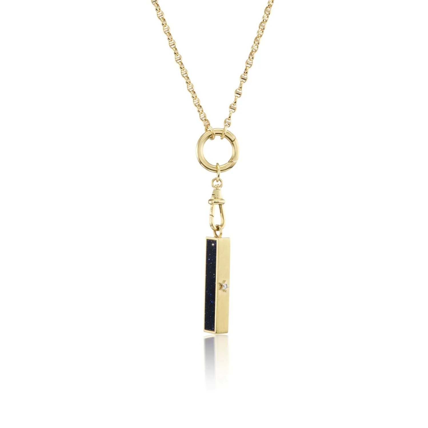 Night & Day four faces pendant with blue aventurine, white mother of pearl, and diamond. Chain included.