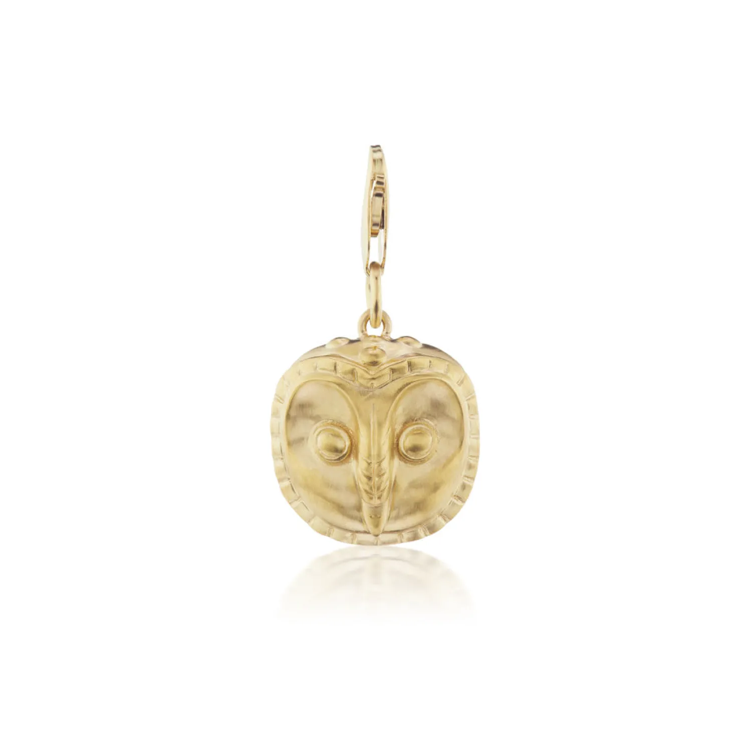 Yellow gold wise owl face charm. Clasp included.
