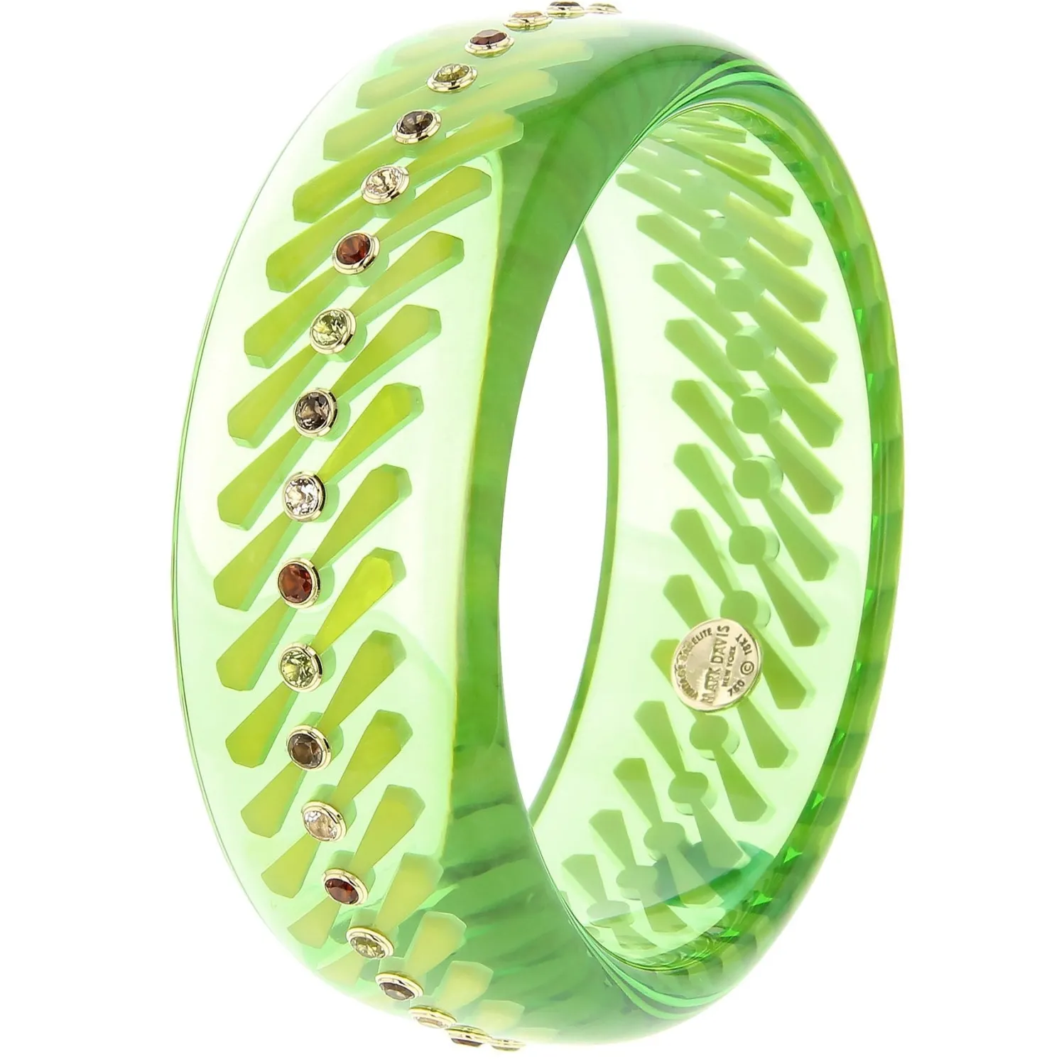 Mark Davis “Gracie” Vintage Prystal Bangle with Tiny Tie-shaped Inlay Detailing. Citrine, Mozambique Garnet and White Topaz set in Yellow Gold. Each Mark Davis Piece is One-of-a-Kind and Sustainably Produced in South Carolina. Prystal Eieces are Especially Eare.