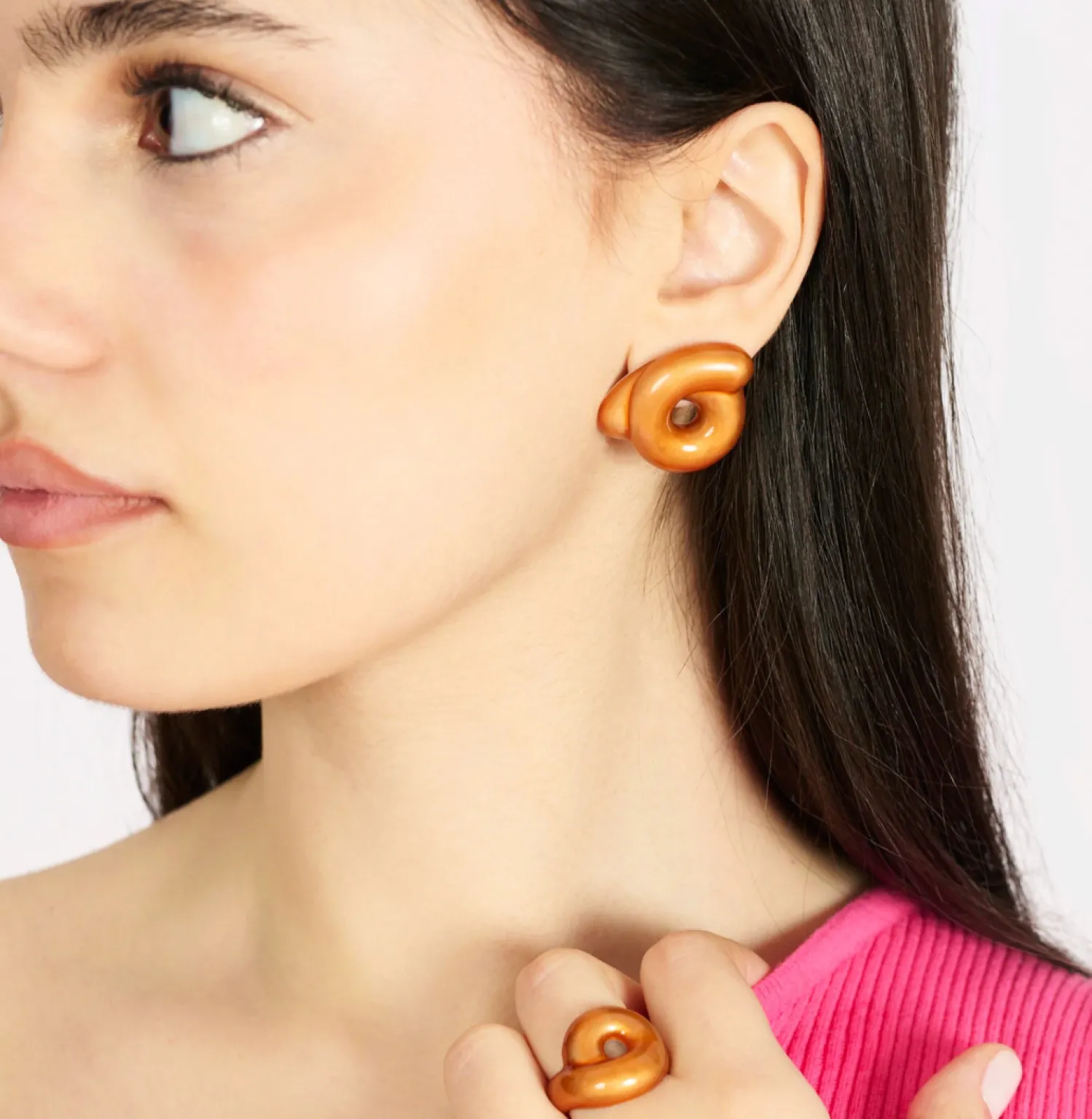 Bea Bongiasca Tarallo Stud Earrings with Hand-painted Savannah Orange Enamel in Silver.