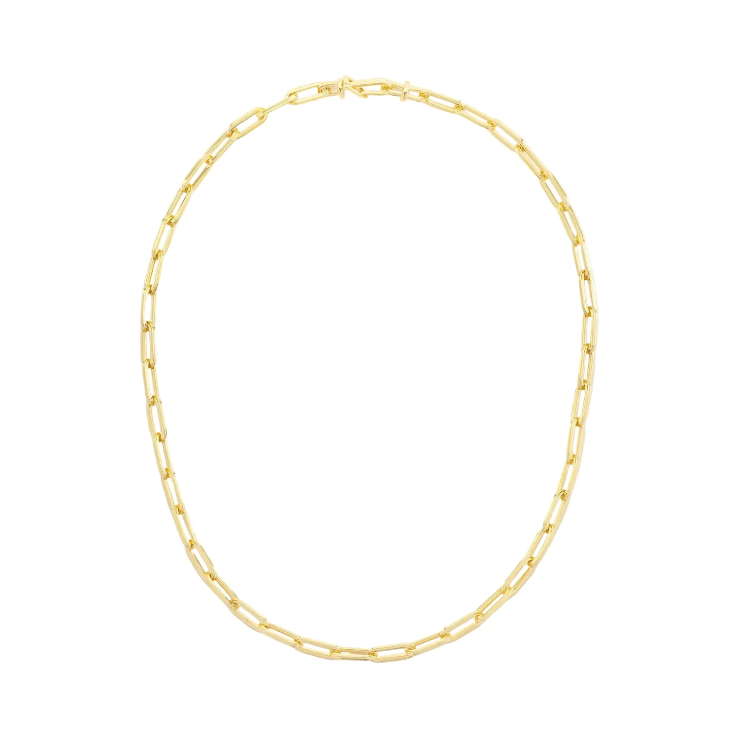 Yellow Gold Elongated Link Chain with Small Pave Diamond Lock