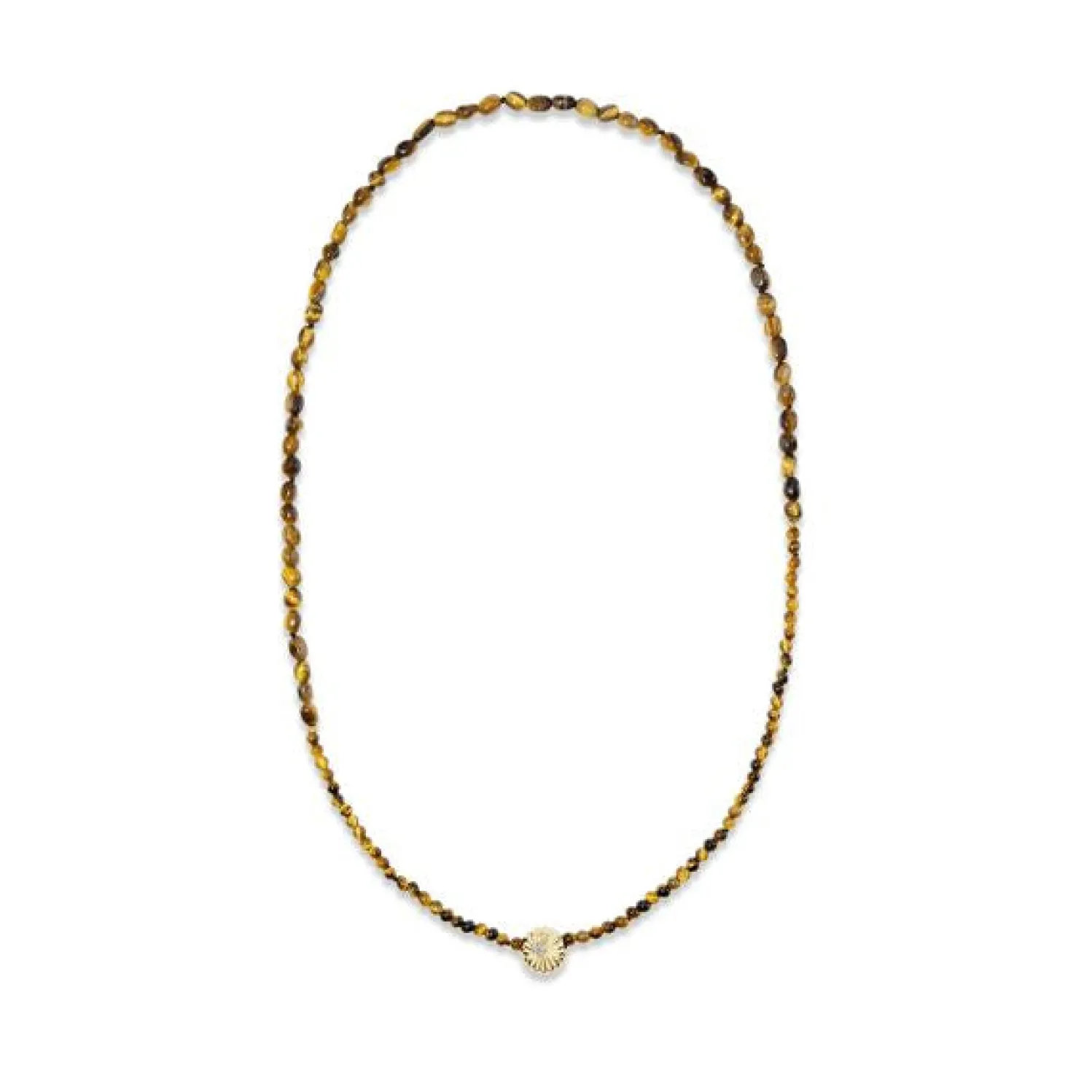 BECK Tiger’s Eye Beaded Sol Necklace in Yellow Gold. Pendant has a Single White Diamond at the Center. A Great Piece for Layering.